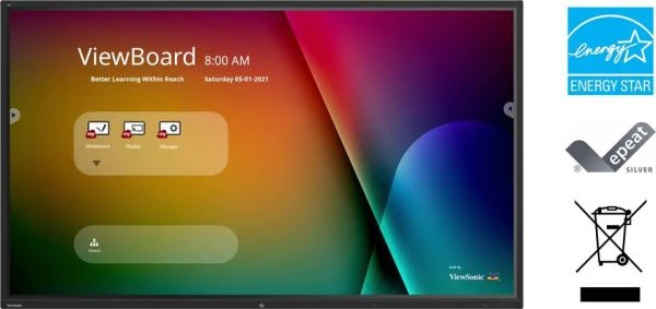 Интерактивный дисплей ViewBoard с диагональю 75", разрешением 4K и сертификацией EDLA для корпоративных устройств