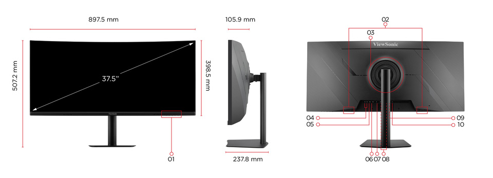 Immerse yourself in a comfortable, wide viewing experience with stunningly detailed visuals. The VG3820C features WQHD+ resolution (3840 x 1600) and an ultra-wide 21:9 aspect ratio, offering 35% more screen space than a 16:9 monitor of the same size, making it perfect for enhanced multitasking.