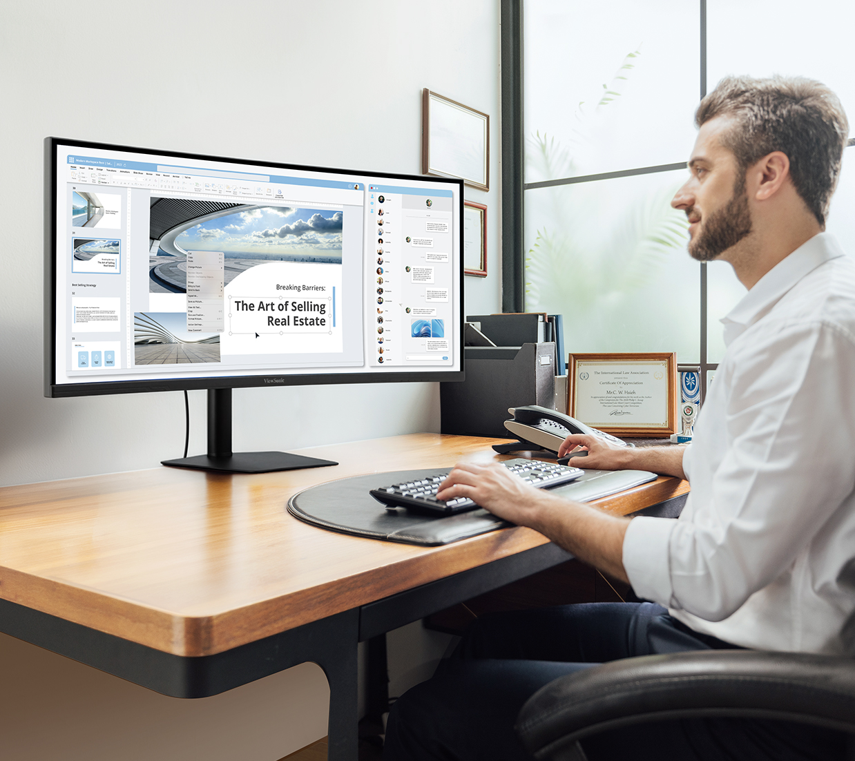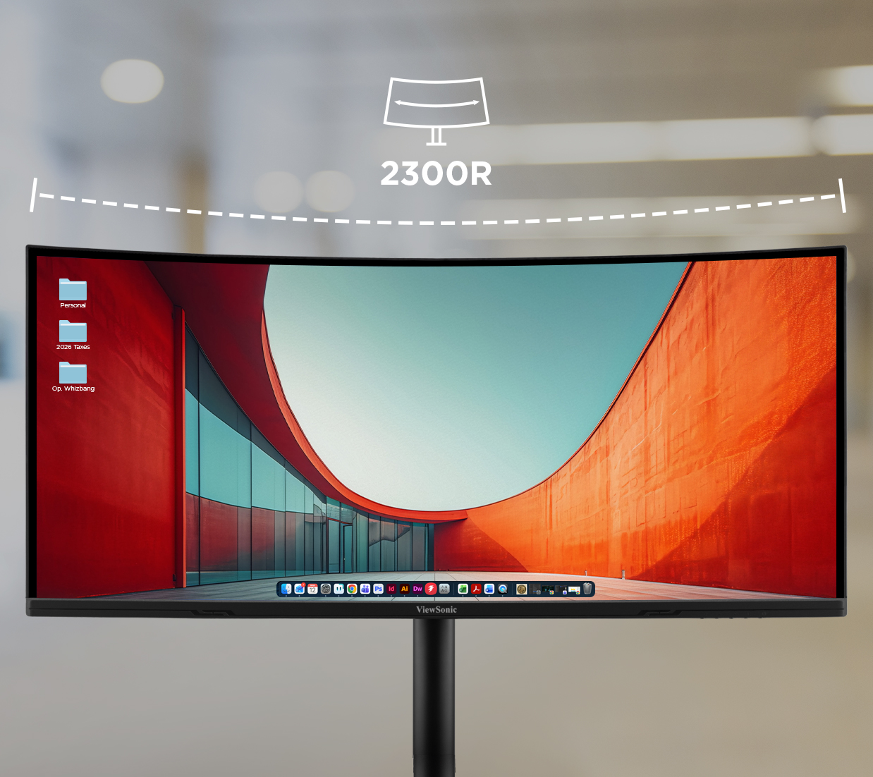 A 2300R curved display delivers a more immersive experience and helps reduce eye strain by keeping the edges of your screen within a natural viewing distance.