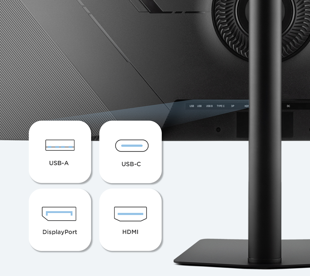 Enjoy maximum flexibility with a wide range of connectivity options designed to fit your setup. USB-C, HDMI, or DisplayPort inputs let you effortlessly connect to laptops, desktops, and other devices, giving you the freedom to switch sources with ease. An integrated USB hub further simplifies your workspace to connect keyboard and mouse.