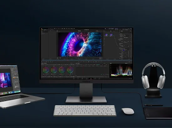 Con una cobertura de la gama de colores DCI-P3, estos monitores ofrecen colores vibrantes y fieles a la realidad que se alinean perfectamente con el rendimiento de color líder en la industria de Mac. Ya sea que esté editando fotos, creando diseños o viendo medios, estos monitores se combinan perfectamente con su MacBook Pro, MacBook Air, Mac Pro o Mac mini.