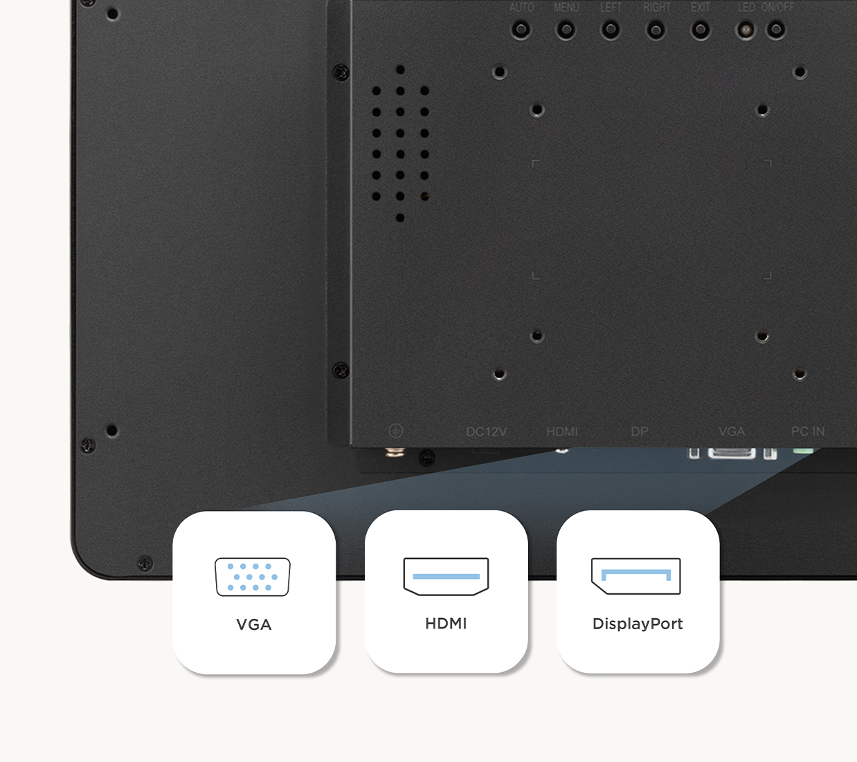 VGA, HDMI and DisplayPort inputs make it easy to connect to POS systems, laptops and other devices for seamless content sharing.