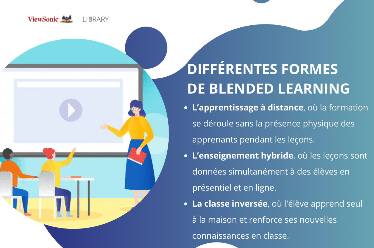 Le blended learning, qu’est-ce que c’est ? Parfois appelé formation mixte en français, il existe en réalité depuis le début des années 2000. Il s’agit d’une approche pédagogique combinant méthodes traditionnelles et nouvelles technologies. Le blended learning englobe de nombreuses pédagogies et méthodes d’apprentissage, il y a d’ailleurs de grandes chances que vous ayez déjà rencontré certaines d’entre elles. Examinons de plus près ce qui se cache derrière cette nouvelle tendance et intéressons-nous aux à son application dans les salles de classe. Continuez votre lecture pour en apprendre plus sur le blended learning et ses différentes approches ou découvrez les solutions de ViewSonic pour l’éducation en cliquant ici. Vous avez probablement déjà entendu parler de blended learning, peut-être sans le savoir d’ailleurs. Il y a même de grandes chances que vous y ayez été confrontés durant vos études. En effet, voilà déjà presque 20 ans qu’il a fait son apparition! Son implémentation a commencé avec le déploiement des premiers ordinateurs dans les établissements scolaires et le développement des ressources éducatives sur internet. La technologie est utilisée pour compléter le contenu et les ressources des leçons traditionnelles. Il aura toutefois fallu attendre le début de la pandémie de COVID-19 pour qu’il commence à faire parler de lui en dehors de la communauté éducative. S’il répond à plusieurs définitions, toutes se retrouvent sur un point : le blended learning peut prendre des formes très différentes. Parmi les approches tombant sous sa coupe, on retrouve par exemple l’enseignement hybride, l’apprentissage à distance, la classe inversée et bien d’autres modèles basés mettant l’EdTech à profit. Mais avant d’entrer dans les détails, commençons par définir clairement et simplement ce qu’est le blended learning. Le blended learning, qu’est-ce que c’est ? Une définition simple Le blended learning est une approche éducative où la classe en présentiel traditionnelle est supportée ou complétée par la technologie et dans laquelle les apprenants utilisent des ressources physiques et en ligne. Les technologies utilisées sont très diverses, et l’implémentation varie grandement d’un établissement à l’autre. Il ne s’agit donc pas d’une approche rigide ou d’un modèle d’apprentissage, mais plutôt d’une catégorisation. Contrairement à ce que l’on pourrait croire, le blended learning n’a pas pour objectif de remplacer les enseignants par la technologie. Il met en avant l’utilisation des nouvelles technologies comme une assistance à la création et à la présentation des cours pour permettre aux éducateurs de mieux se concentrer sur les besoins individuels des apprenants. Il ouvre un nouveau champ d’opportunités en termes de flexibilité et d’accessibilité, plaçant l’élève au centre de son processus d’apprentissage. Le blended learning s’appuie sur un large éventail de technologies. Cela va des simples ordinateurs aux tableaux interactifs, en passant par les ENT, la vidéoconférence, les services de stockage cloud, voire même des formations diplômantes entièrement en ligne. L’utilisation qui est faite de ces technologies est très variée. Certains se contenteront de partager quelques ressources via Dropbox quand d’autres implémenteront des programmes d’e-learning complets, avec leçons en visioconférences et devoir en ligne. De fait, le blended learning peut être implémenté de bien des manières et à des degrés très différents. Intéressons-nous à quelques-unes de ses formes les plus communes. Différentes formes de blended learning Le concept de blended learning ne fait pas référence à une méthode ou à une pédagogie spécifique. Il désigne toute approche ou modèle éducatif intégrant les technologies du numérique à l’apprentissage. Autrement dit, il s’agit d’une grande catégorie englobant diverses approches et méthodologies. Parmi elles, trois sont déjà assez répandues : L’apprentissage à distance décrit toute forme de formation se déroulant sans la présence physique des apprenants pendant les leçons. Aujourd’hui, c’est souvent synonyme de cours en ligne. Ce genre de programme peut être donné de manière synchrone, asynchrone ou un mélange des deux. L’enseignement hybride fait référence aux leçons données simultanément à des élèves en présentiel, dans la salle de classe, et en ligne. Les apprenants présents physiquement et ceux à distance participent à la même leçon et peuvent interagir entre eux ou avec leur professeur. La classe inversée renverse complètement les méthodes d’enseignement traditionnelles. L’élève apprend seul la théorie à la maison et renforce ensuite ses nouvelles connaissances en classe, via des exercices ou des activités de groupe. Cette méthode permet de développer l’apprentissage autonome chez l’apprenant, et l’enseignant endosse alors le rôle de mentor ou de guide plutôt que celui de professeur. Ces formes de blended learning n’éliminent pas forcément les enseignants ou leur méthodes habituelles d’enseignement. Elles prônent au contraire une utilisation de la technologie comme un moyen de partager, d’interagir ou d’améliorer l’acquisition de connaissances. Certaines d’entre elles permettent aussi de surmonter des difficultés ou barrières rencontrées par l’apprenant dans le cadre de l’éducation traditionnelle! Conclusion Le déploiement du blended learning a déjà commencé. L’utilisation de la technologie appliquée à l’éducation ne permet pas seulement de dépasser certaines limites de l’enseignement traditionnel, elle confère aussi aux apprenants un rôle plus actif dans leur apprentissage tout en offrant de nouvelles possibilités et plus de flexibilité aux équipes éducatives. Avec le développem