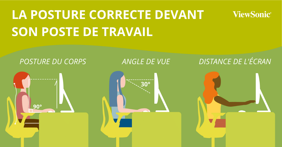 Au-delà des filtres et autres technologies proposés par les fabricants de moniteurs, bien positionner son écran vous permettra de travailler plus confortablement. Que vous utilisiez un ordinateur de bureau ou portable, bien installer votre écran vous aidera à adopter une bonne posture et à réduire fatigues et douleurs en tous genres.