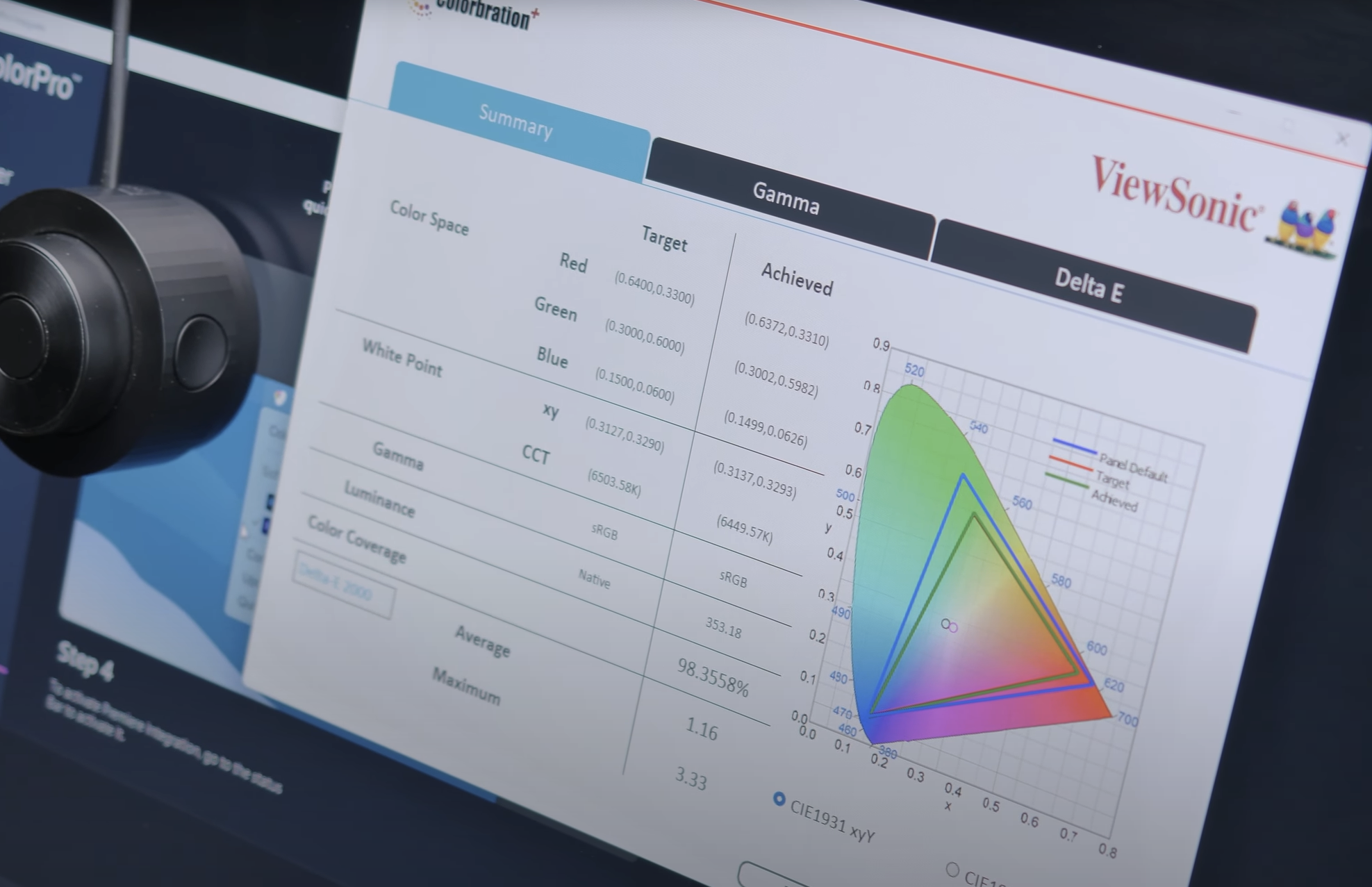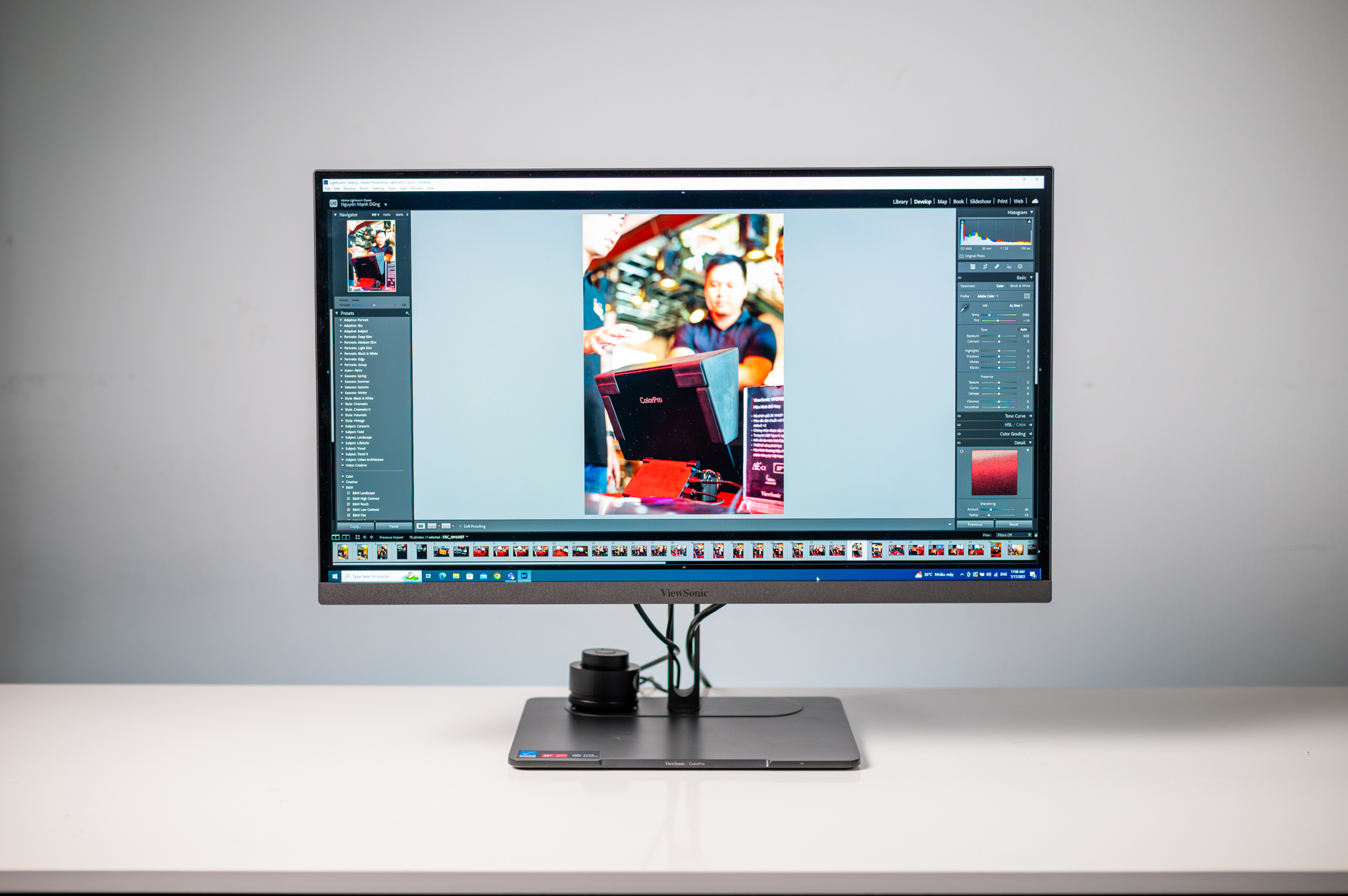 Một tính năng khác đáng chú ý của sản phẩm này là nút vặn ColorPro Wheel độc quyền của ViewSonic, giúp bạn hiệu chỉnh và điều chỉnh màu sắc đơn giản trên các phần mềm Adobe và Capture One. Không chỉ dừng lại ở đó ColorPro Wheel còn có thể hoạt động như một máy đo màu, cho phép nó hiệu chỉnh màu bằng cảm biến giống như một thiết bị chỉnh màu của bên thứ ba như DataColor hoặc X-Rite.