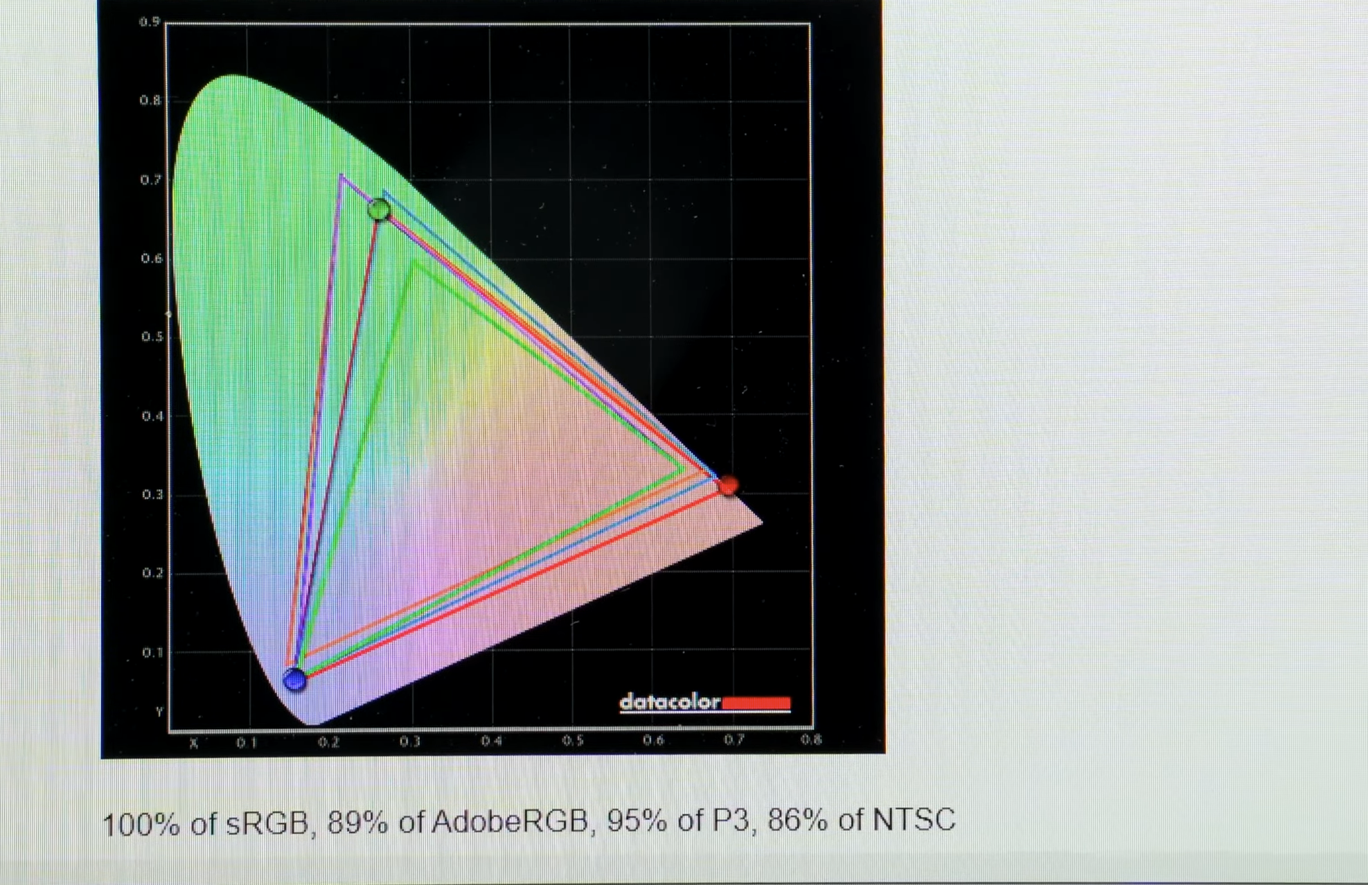 Không gian màu thực tế bao phủ của VP2776 rất rộng với 100% sRGB, 100% Rec 709, và độ bao phủ 95% DCI-P3. Mỗi màn hình trước khi đến tay người dùng đều được hiệu chỉnh màu tại nhà máy với độ chính xác Delta-E<2. Thực tế DeltaE đo được chỉ ở mức 1.16, vô cùng ấn tượng cho một chiếc màn hình đồ họa. Không chỉ vậy, VP2776 còn bao gồm tính năng cân bằng đồng bộ sáng, giúp độ sáng trên toàn bộ màn hình có độ chênh lệch < 5% loại bỏ mọi điểm sáng khác biệt trên màn hình. Độ sáng tổng thể là 400 cd/m2 đủ để đạt được chứng nhận DisplayHDR 400.