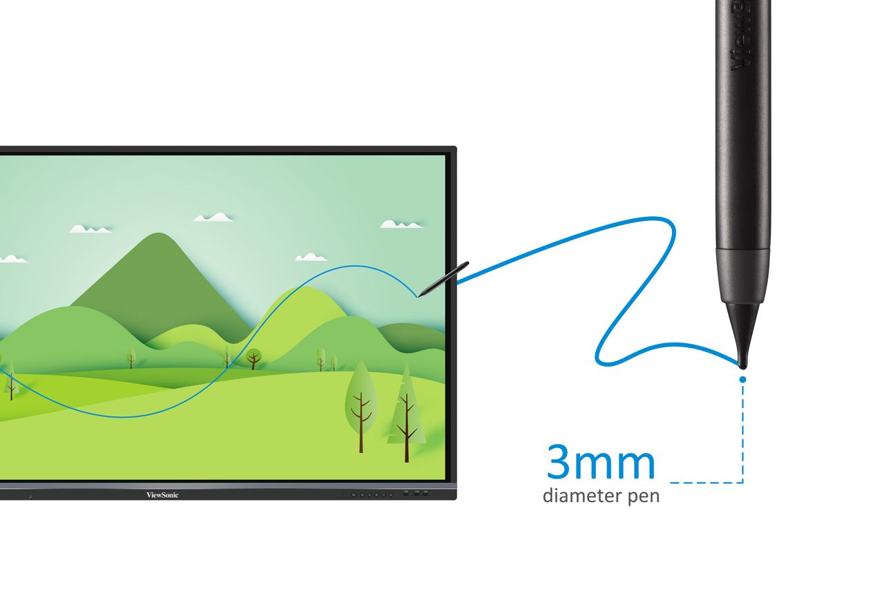 The ViewBoard® IFP50 series embraces ultra fine touch technology to offer fine precision writing. Along with slim IR touch and its optimized integration, the processing time is faster than traditional IR panels. Meanwhile, smooth dual-pen writing with our new, slim 3mm pens enables teachers and students to work efficiently on any detailed tasks that require the accurate use of fine tipped pens during group discussion. On top of that, the ViewBoard® IFP50 series is designed with a slim bezel to broaden your viewing experience, so that even at the edge you can write clearly and thinly. It is also well integrated with myViewBoard™ whiteboarding software to collaborate on the go, and further complimented by ViewBoard® Cast software for 4 way split screen content sharing.Ultra Fine Touch Technology