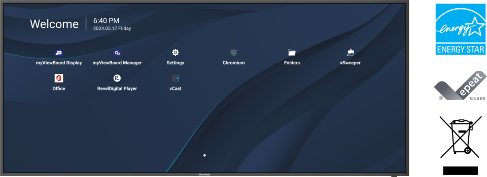 The CDE105UW is an ultrawide 105” digital display delivering stunning image performance with 5K resolution. Designed for both corporate and commercial use, it features a 21:9 aspect ratio, providing 33% more screen real estate than a comparable 16:9 display, making it ideal for Microsoft Teams Rooms and Front Row Mode. Powered by an octa-core SoC running Android 13, the CDE105UW enables seamless multitasking with a USB-C port that delivers 100W and multiple wireless content sharing options. It also supports daisy chaining and comes pre-installed with ViewSonic Manager, a centralized platform that streamlines corporate communication and enhances operational efficiency.