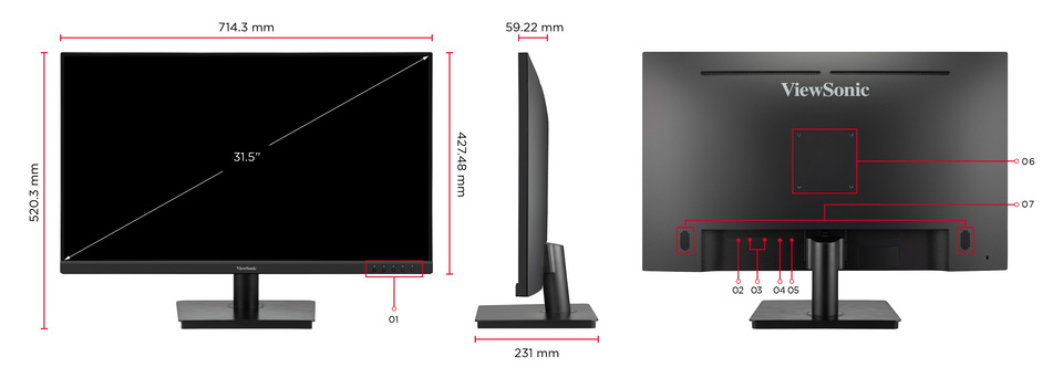 Conveniently mount the monitor to your preference by utilizing the 100mm x 100mm VESA-compatible mount design.100mm x 100mm VESA mount