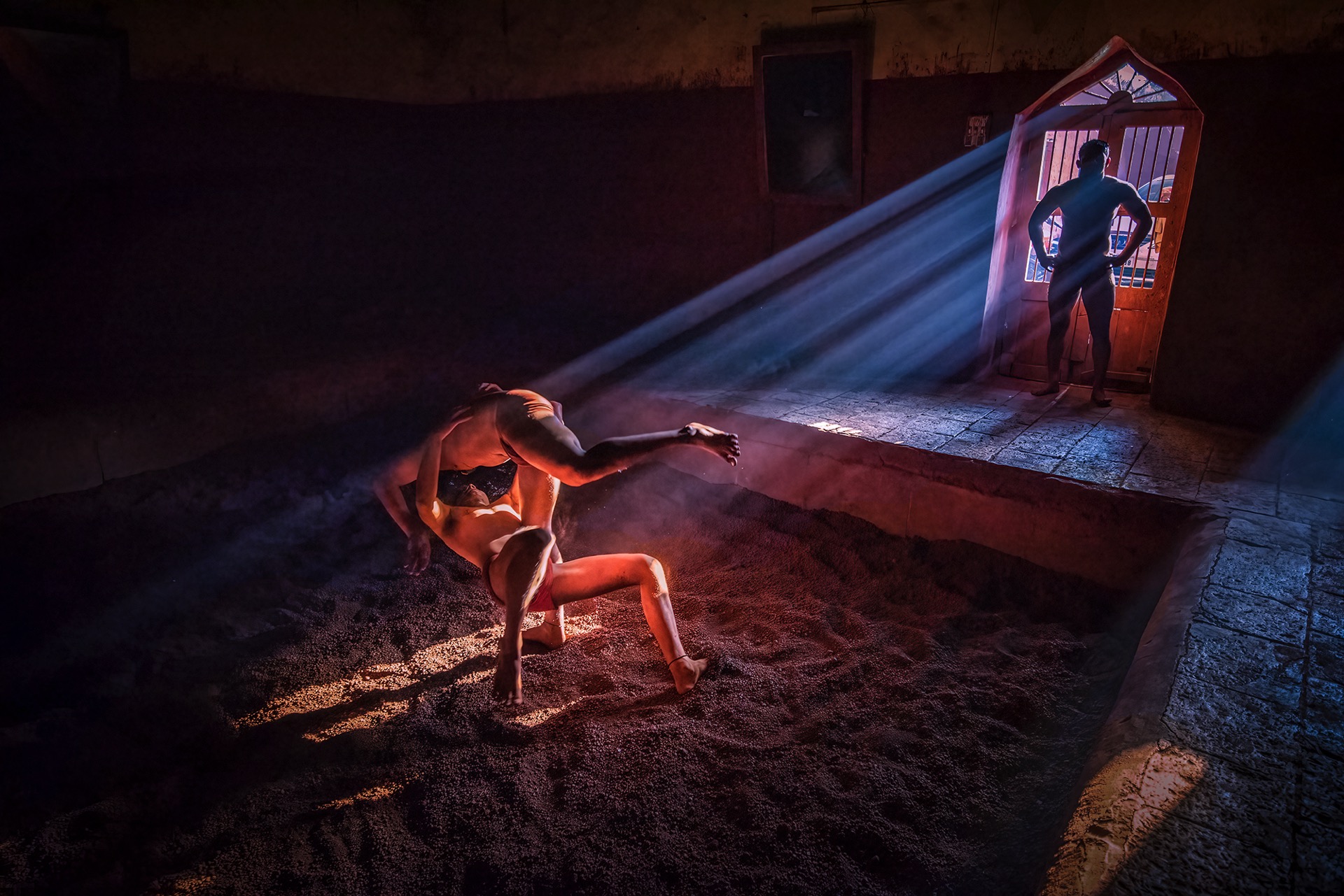 Teamgenoten tillen een overwinnende man hoog boven hun hoofd, te midden van de modder en het gejuich van het modderbalworstelfestival in Van Village, provincie Bac Giang, Vietnam. Het thema ‘opkomst’ heeft in deze context een sterke weerklank. Het symboliseert niet alleen de fysieke verheffing van de triomfantelijke worstelaar, maar ook de collectieve geestdrift van het team, hun gedeelde vreugde en hun wederzijdse steun voor elkaar. Het symboliseert de kracht van eenheid en het vermogen van individuen om obstakels te overwinnen wanneer ze samenwerken om een gemeenschappelijk doel te bereiken.
