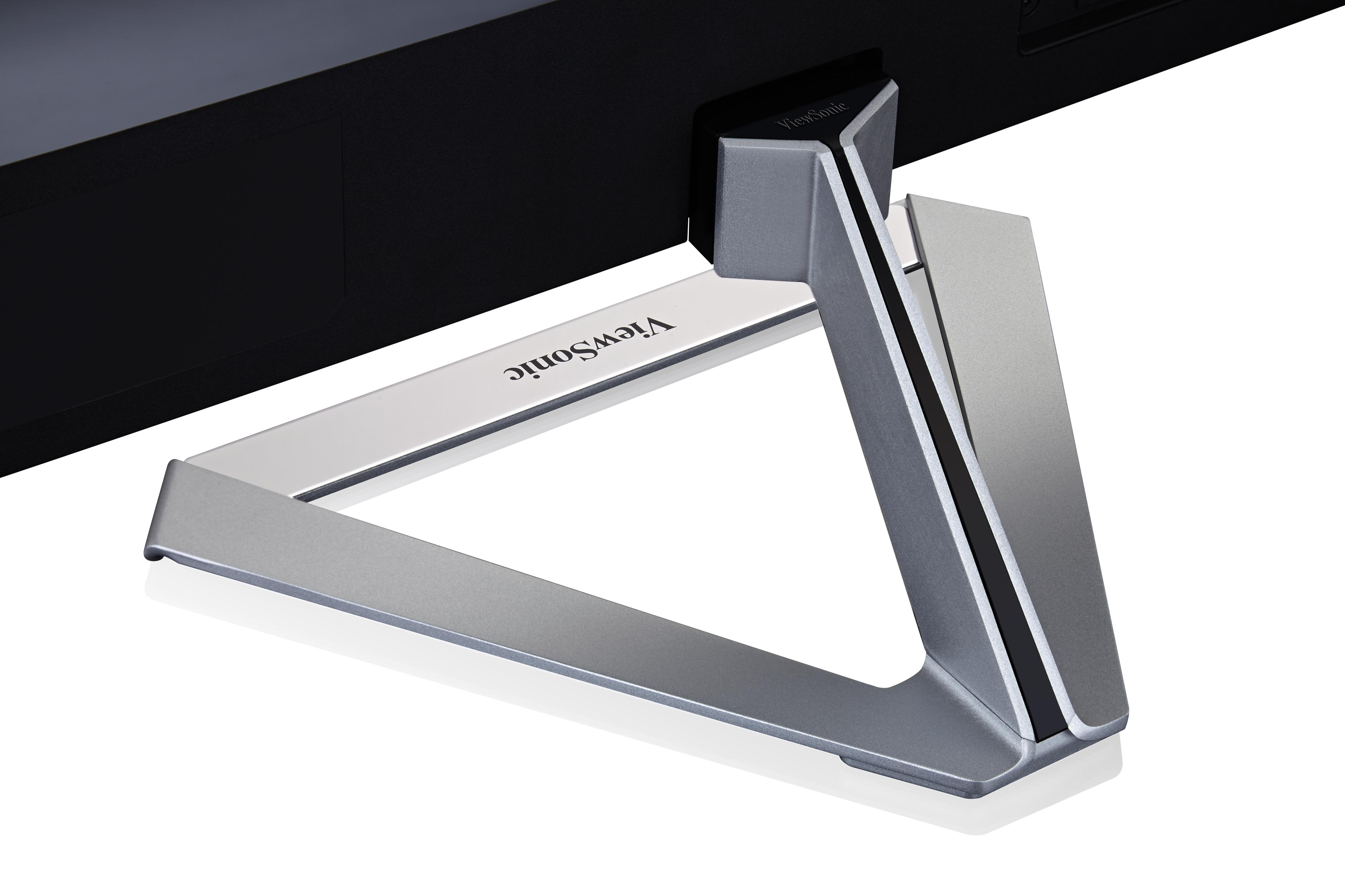 • Frameless bezel and metallic triangle stand