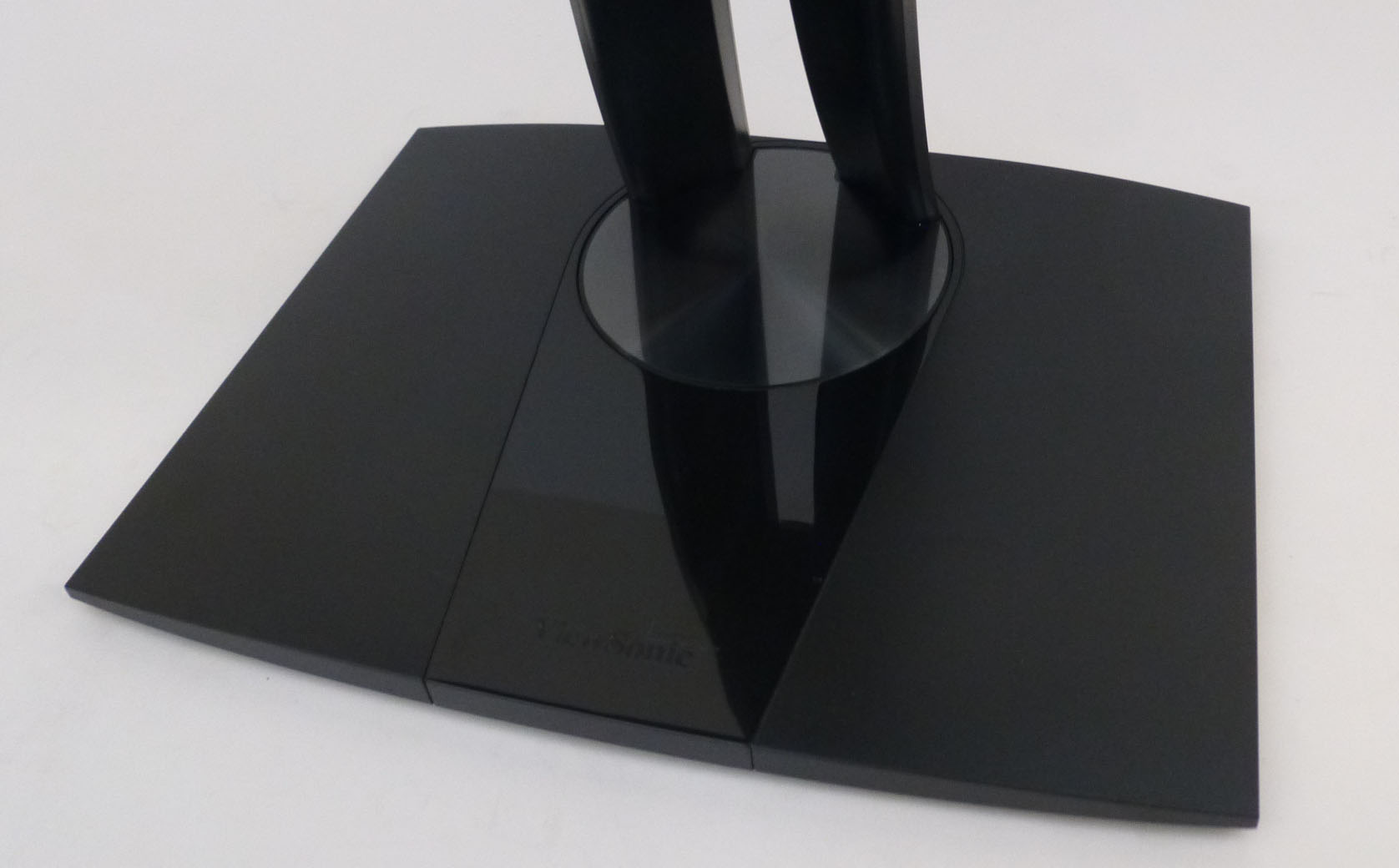 The monitor arm and base are matte black plastic also, with the exception of a triangular glossy black section in the middle as you can see from the below picture. The stand provides a decent, wide and sturdy base for the screen and seems very stable.