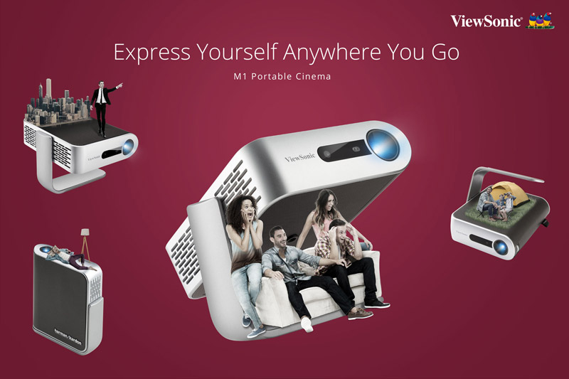 Manila, Philippines – August 7, 2018 – ViewSonic Corp., a leading global provider of visual solution products, announces it has started shipping the M1 ultra-portable LED projector with built-in dual Harman Kardon® speakers. Ideal for sharing instant multimedia, the iF Product Design Award-winning ViewSonic M1 ultra-portable LED projector displays convenient entertainment in just about any room at home and while traveling. For on-the-go professionals, share multimedia confidently with a built-in battery that provides up to six hours* of power, 16GB of built-in memory, and LED technology that offers up to 30,000* hours of usage.