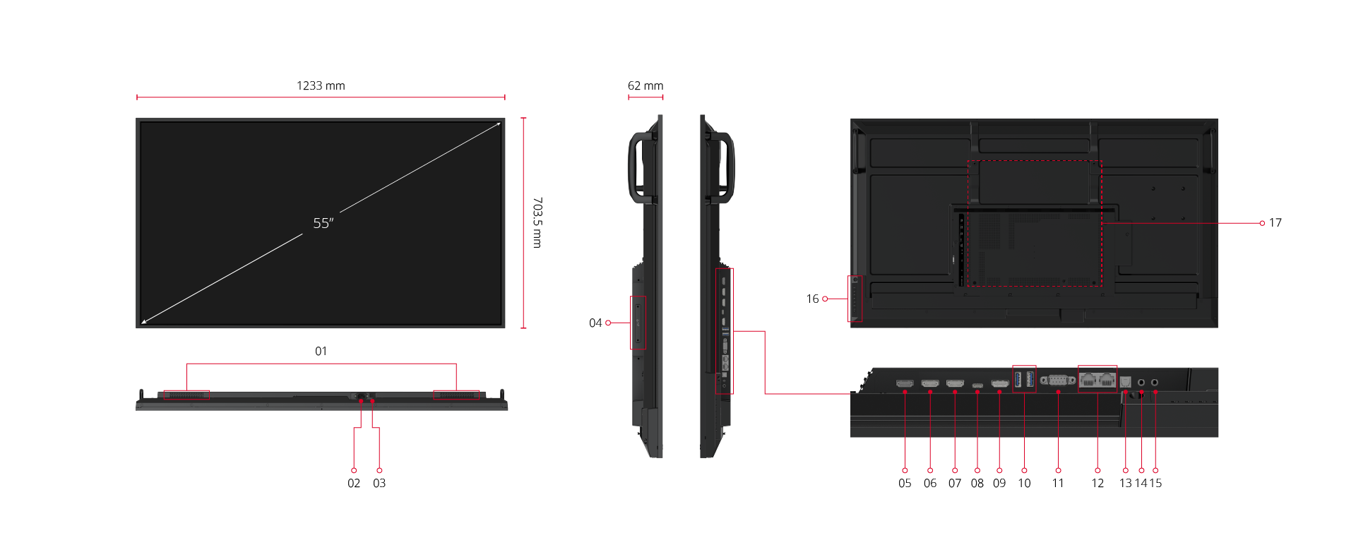 Display Area (mm): 1209.6H) x 680.4(V) 54.6" diagonal