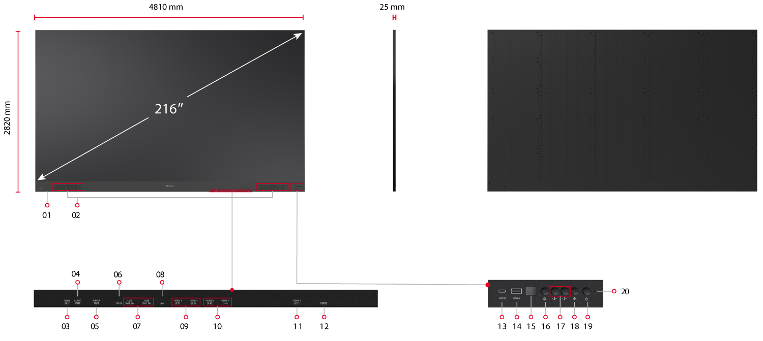 Gaze upon astoundingly lifelike imagery on the minimalistic 2nd Gen 135” ViewSonic® LDP135-151 All-in-One Direct View LED display. The All-in-One modular design offers an effortless installation and maintenance process. This next-generation display is upgraded with advanced features to deliver a spectacular audiovisual experience and user-forward design.Delivering 120% Rec. 709 wide color gamut, lightning-fast 4,440Hz refresh rate, and a peak brightness of 600 nits, every video, presentation, or lecture will be an immersion of real-to-life color and extraordinary detail. The display is also equipped with Harman Kardon speakers, 4K/HDR/HLG support and Frame Interpolation technology for unsurpassable, immersive content delivery. At 25mm slim and lined with a 5mm frameless edge, the sleek display exudes sophistication and elegance in any modern setting. It offers flexibility and adaptability in design – with portrait and landscape installations to complement any space and scenario. The screens can be easily fused together to form an ultra-wide 32:9 video wall to deliver a seamless visual experience in epic proportions. The system control box can also be easily detached to blend into every design.