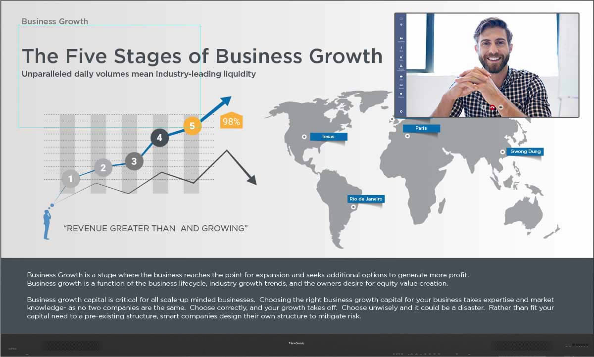 The pre-installed ViewBoard® Cast enables content to be streamed from mobile devices onto the display over wireless networks, whether one-to-one or many-to-one.