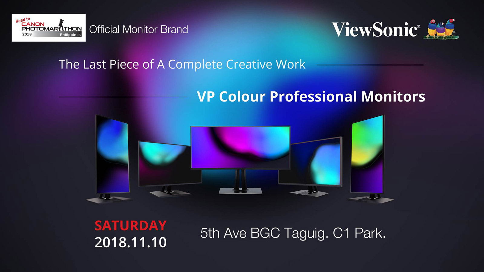 Visit ViewSonic at the Canon PhotoMarathon Philippines 2018 in 5th Ave BGC Taguig C1 Park to see VP series monitors in action.