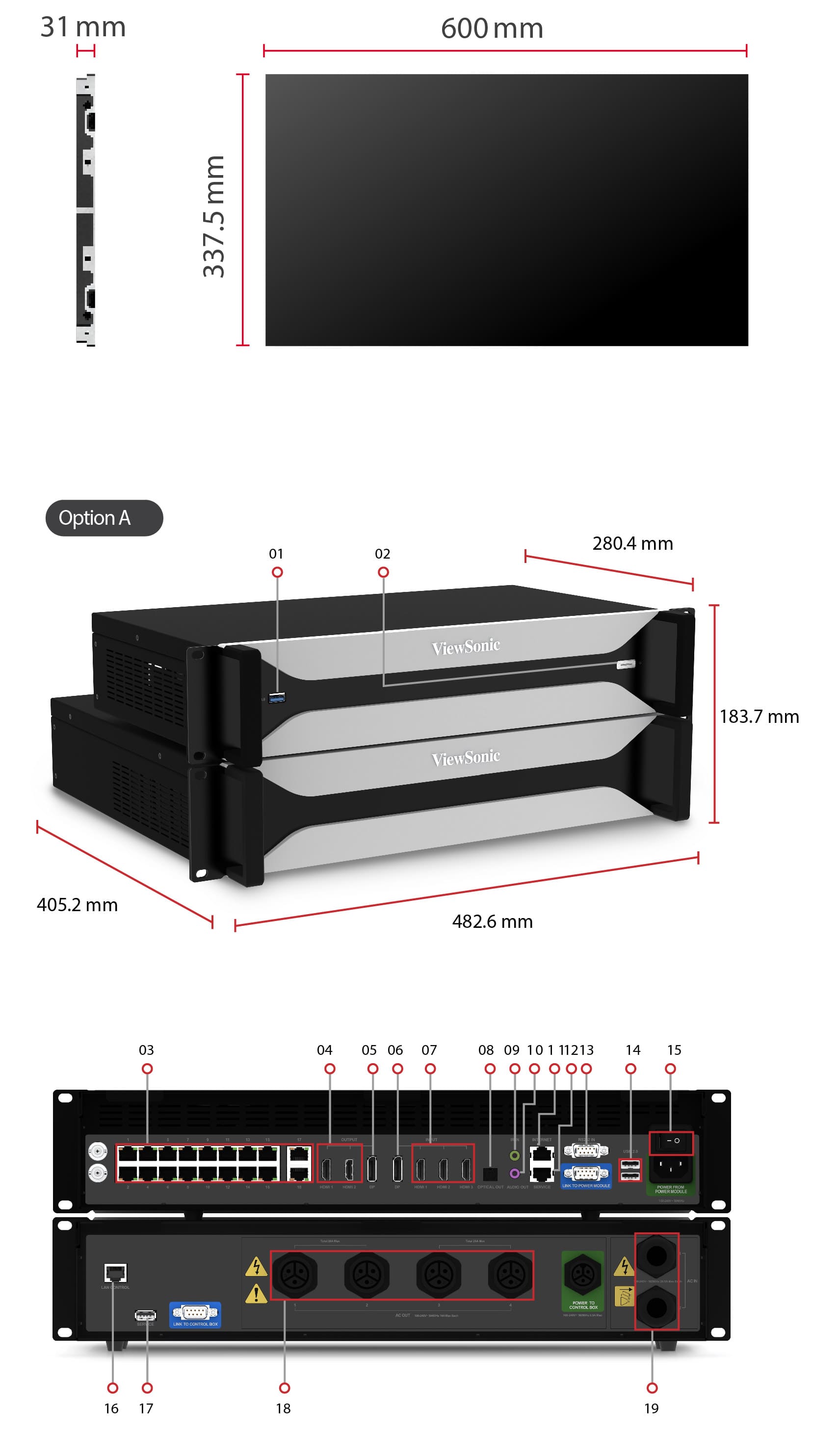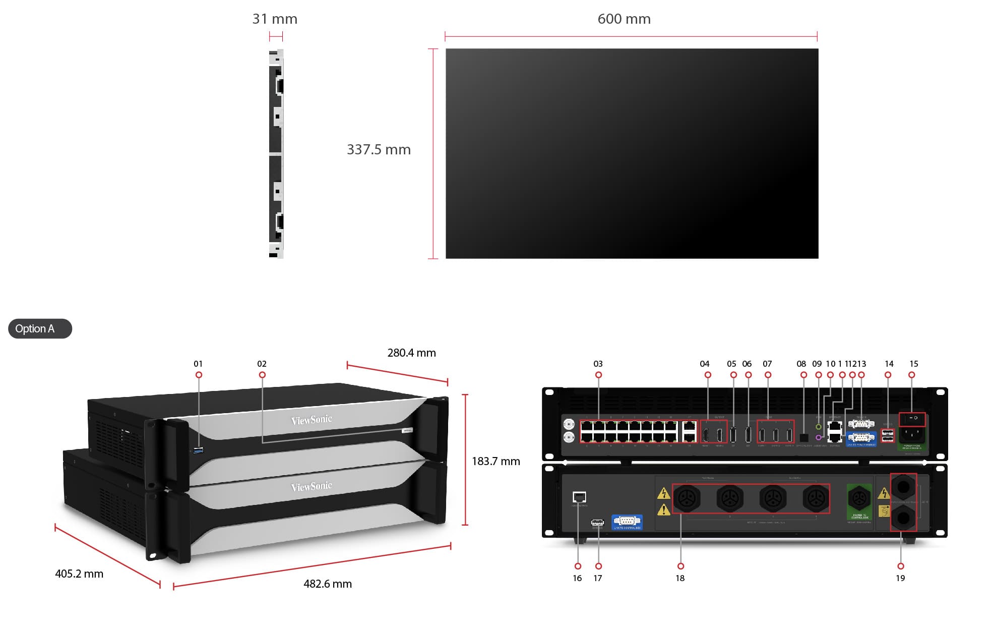 *The display's maximum supported resolutions are 7,680 x 1,080 pixels for width and 1,920 x 4,320 pixels for height. The maximum power capacity is 6.2 kW.