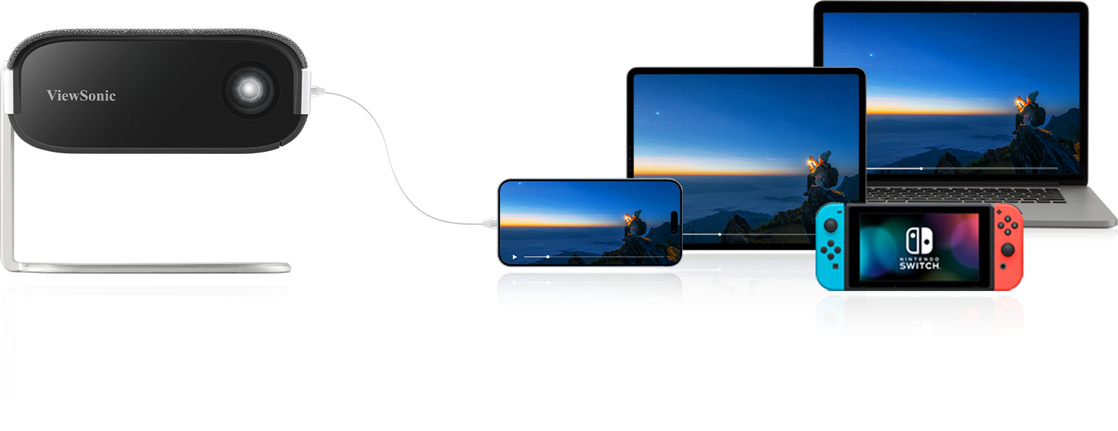 including the latest iPhone, to the M1X using a USB-C cable and effortlessly project video streaming, FaceTime calls, or Nintendo® Switch gaming onto the big screen, all without the need for a docking station.