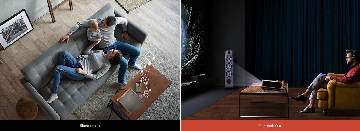 Bucurați-vă de sunet calitativ în propriul confort. Folosiți proiectorul X11-4K ca boxă portabilă cu conectivitate Bluetooth pentru a da startul petrecerii sau conectați căștile Bluetooth pentru a vă bucura de o adevărată experență cinematografică.