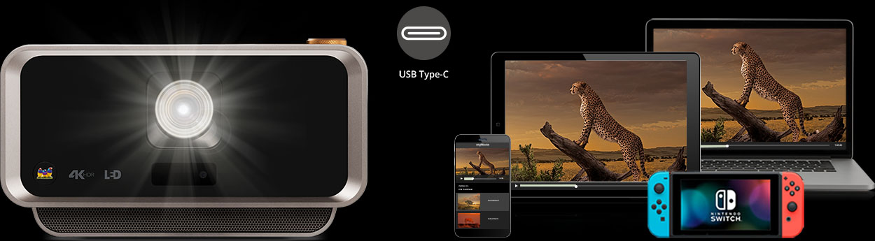 Combinând rezoluția 4K UHD cu suport HDR/HLG, tehnologia LED avansată de generația a 3-a și capacitățile inteligente într-un design portabil, X11-4K oferă o experiență audiovizuală cinematografică captivantă de oriunde din casă. Având mâner, poate fi mutat dintr-o cameră în alta și chiar și în aer liber pentru petrecerile din curte. Configurarea se face fără efort, cu autofocalizare instantanee, reglaje H/V keystone și o lentilă cu rază scurtă de acțiune care oferă un ecran de 100 inci de la o distanță de doar 1,77 m. Experimentați imagini clare la o rezoluție 4K UHD, culori cinematografice care acoperă 125% Rec.709 și o calitate excepțională a sunetului prin intermediul difuzoarelor integrate personalizate de Harman Kardon. Bucurați-va de conectivitate inteligentă, cum ar fi Wi-Fi pentru afișarea wireless a ecranului telefonului dvs. , Bluetooth pentru opțiuni audio flexibile și USB-C pentru streaming direct cu un singur cablu pentru Nintendo® Switch.