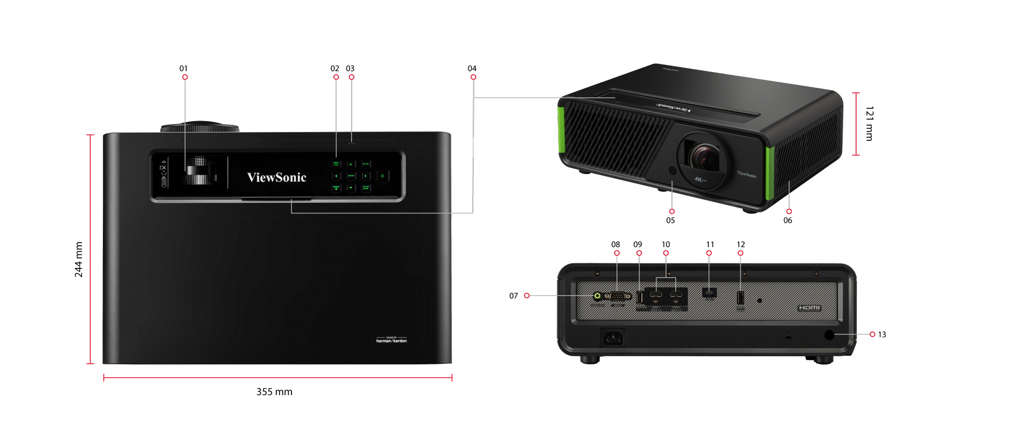 Experience gaming like never before with the world's first “Designed for Xbox” projector series. Boasting a 1440p resolution delivered with an ultra-smooth 120Hz refresh rate on a 100+” screen, the ViewSonic X2-4K transforms gaming sessions into a larger-than-life experience. The projector combines crisp visuals rendered in 4K HDR with cinematic audio produced by Harman Kardon speakers to deliver a truly enthralling audiovisual experience. Immerse yourself in brilliant image quality powered by advanced 3rd generation LED technology that offers a 60,000-hour lifespan without the need for lamp replacement, a high brightness of 2,900 LED Lumens, and vibrant colors covering 125% Rec.709. The ViewSonic X2-4K has a 0.69-0.83 short throw ratio, allowing for a 100" display from just 1.5 meters away, and its H/V keystone and 4 corner adjustment features make creating the ultimate gaming hub a breeze. Screen mirroring via Wi-Fi also enables seamless content streaming, while Bluetooth connectivity provides additional audio options, offering an intuitive and cinematic audiovisual experience. Designed for an Unrivaled