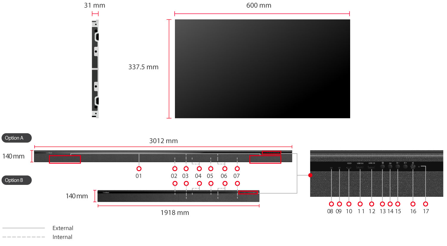 *The display's maximum supported resolutions are 7,680 x 1,080 pixels for width and 1,920 x 4,320 pixels for height. The maximum power capacity is 6.2 kW.