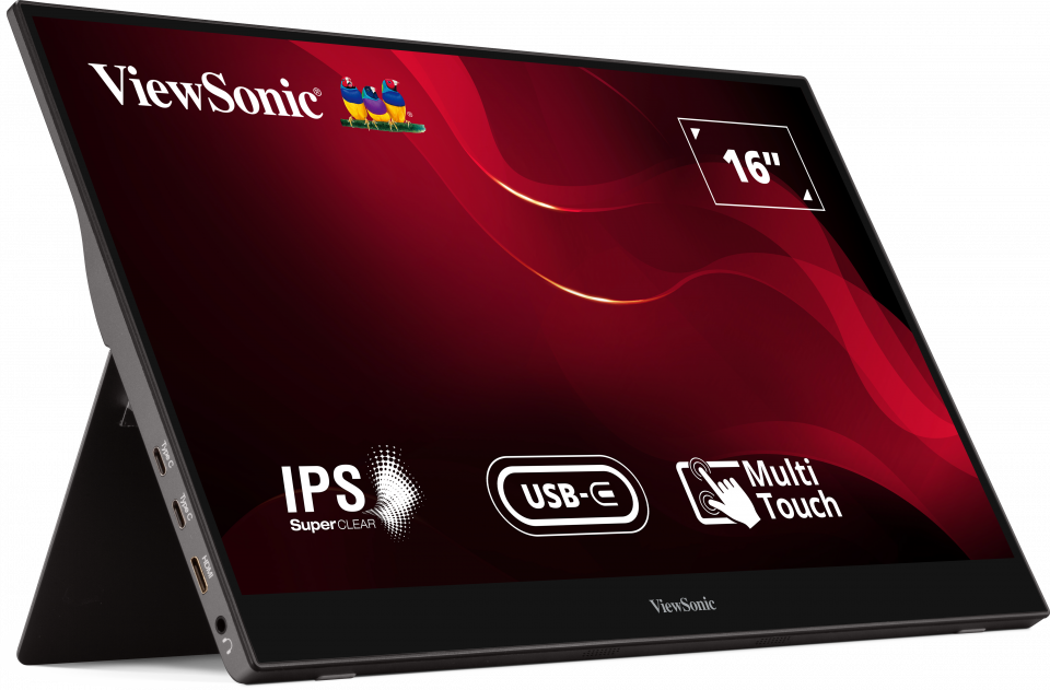 The ViewSonic TD1655 is a portable 16” Full HD monitor with 10-point multitouch capability designed for dual-screen productivity beyond the office. Extend your display from phone, tablet, or laptop to a larger screen for seamless multitasking, personalized one-on-one presentation, or relaxed entertainment. The two universal USB-C connectors provide a one-cable solution for multimedia transfer and power charging. Tailor your work setup to your preferences with adjustable viewing angles and the option for both landscape and portrait display layouts. With a detachable magnetic anti-slip cover, metal case, and foldable aluminum stand designed for convenient mobility, enhance your mobile workstation anywhere, anytime.