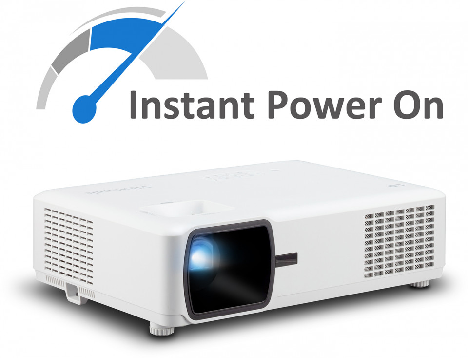 Instant Power On/Off feature allows you to turn on your projector instantly with full brightness and to turn it immediately off without waiting for cooling, which is convenient and saves time.