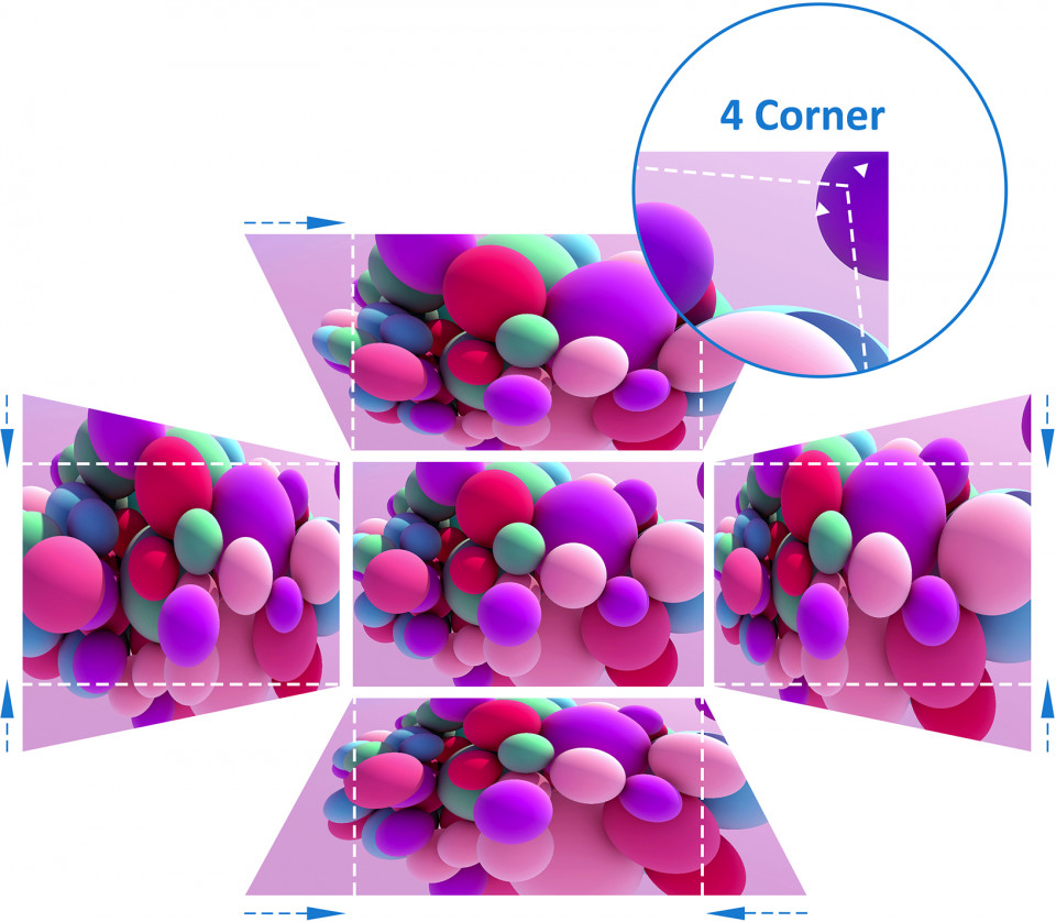 Horizontal and Vertical Keystone correction along with 4 corner adjustment features eliminate crooked or distorted images for a perfectly proportioned picture every time.