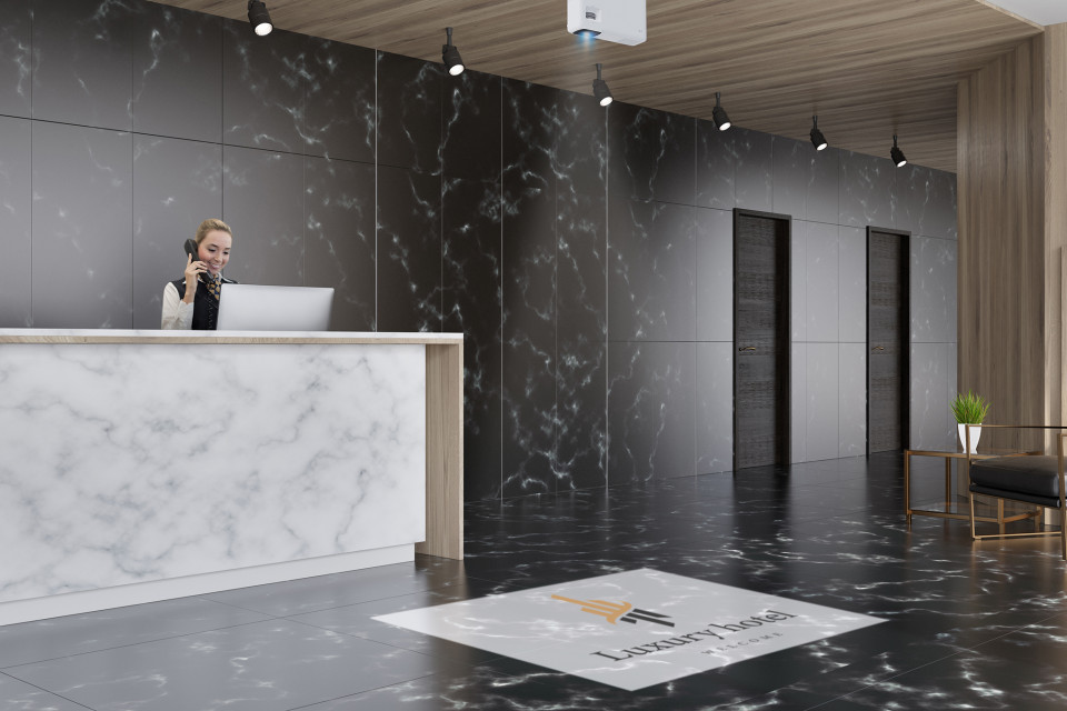 The projector can freely rotate at any angle vertically to aid with creative applications, allowing projection onto ceilings, walls, or angled signage.