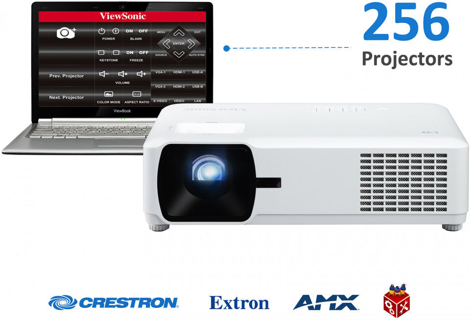 The projector is equipped with Crestron, AMX, Extron and ViewSonic vController, an easy-to-use network management tool.Comprehensive LAN control