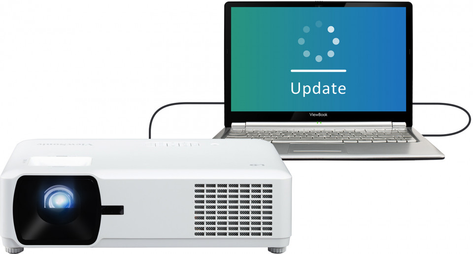 ViewSonic Projector Software Update is available online and gives you the ability to keep your projector firmware up to date easily and conveniently with your laptop and USB cable connection; no need to take your projector in to a service center for software updates. *The latest projector software update can be found in the download section at the bottom of the page when available.