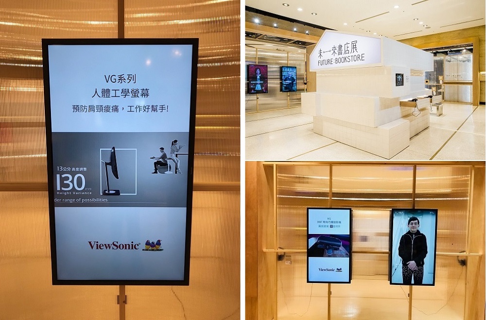 Eslite, Taiwan most famous and premium bookstore, choose again ViewSonic commercial display in their 30th university exhibition – Eslite Future Bookstore during 3/1-3/31. Apart from Eslite’s video, our M1, VG48, X10-4K and XG240R video is hourly running during the exhibition.