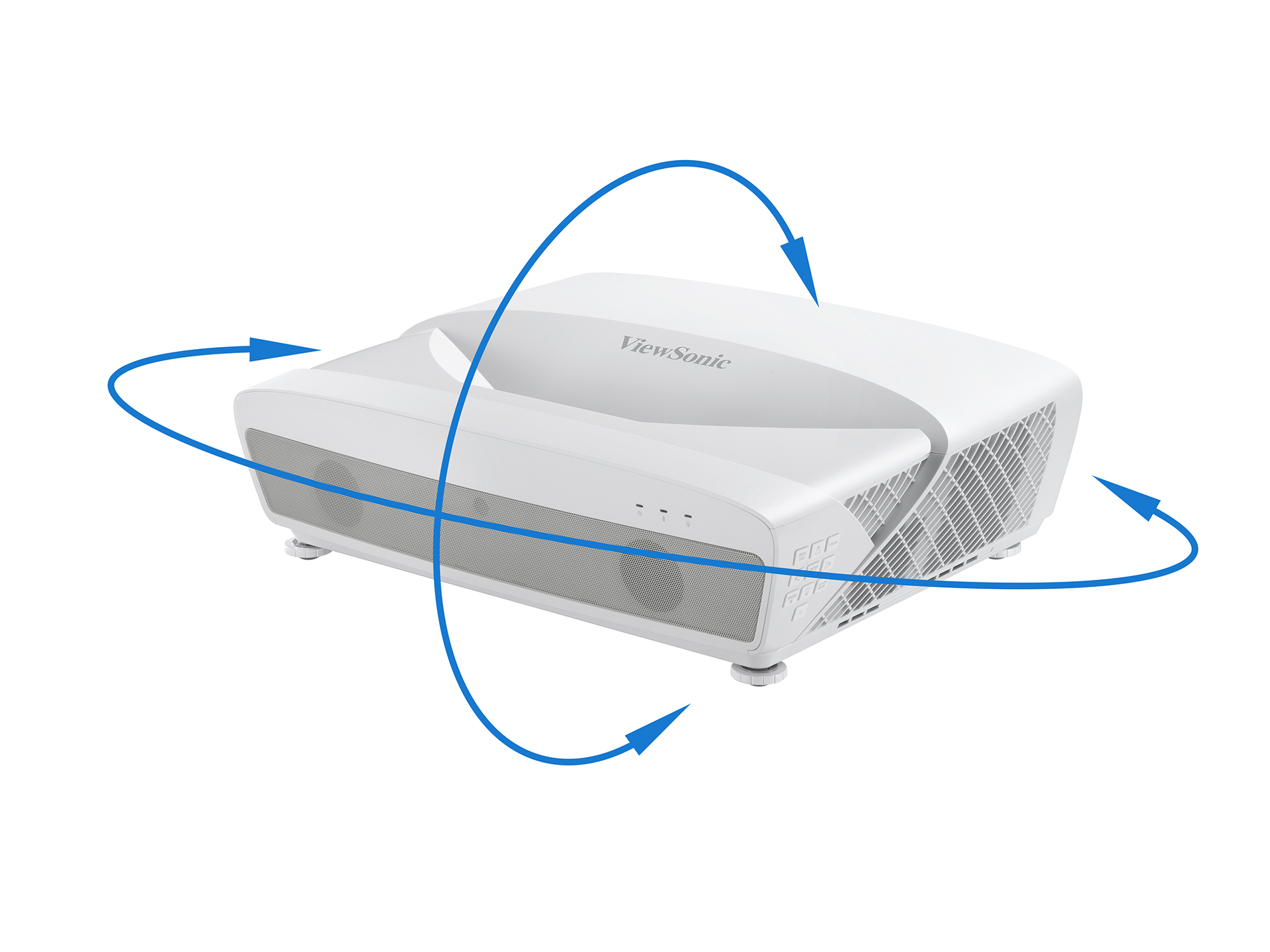 The projector can freely rotate at any angle vertically to aid with creative applications, allowing projection onto ceilings, walls, or angled signage.