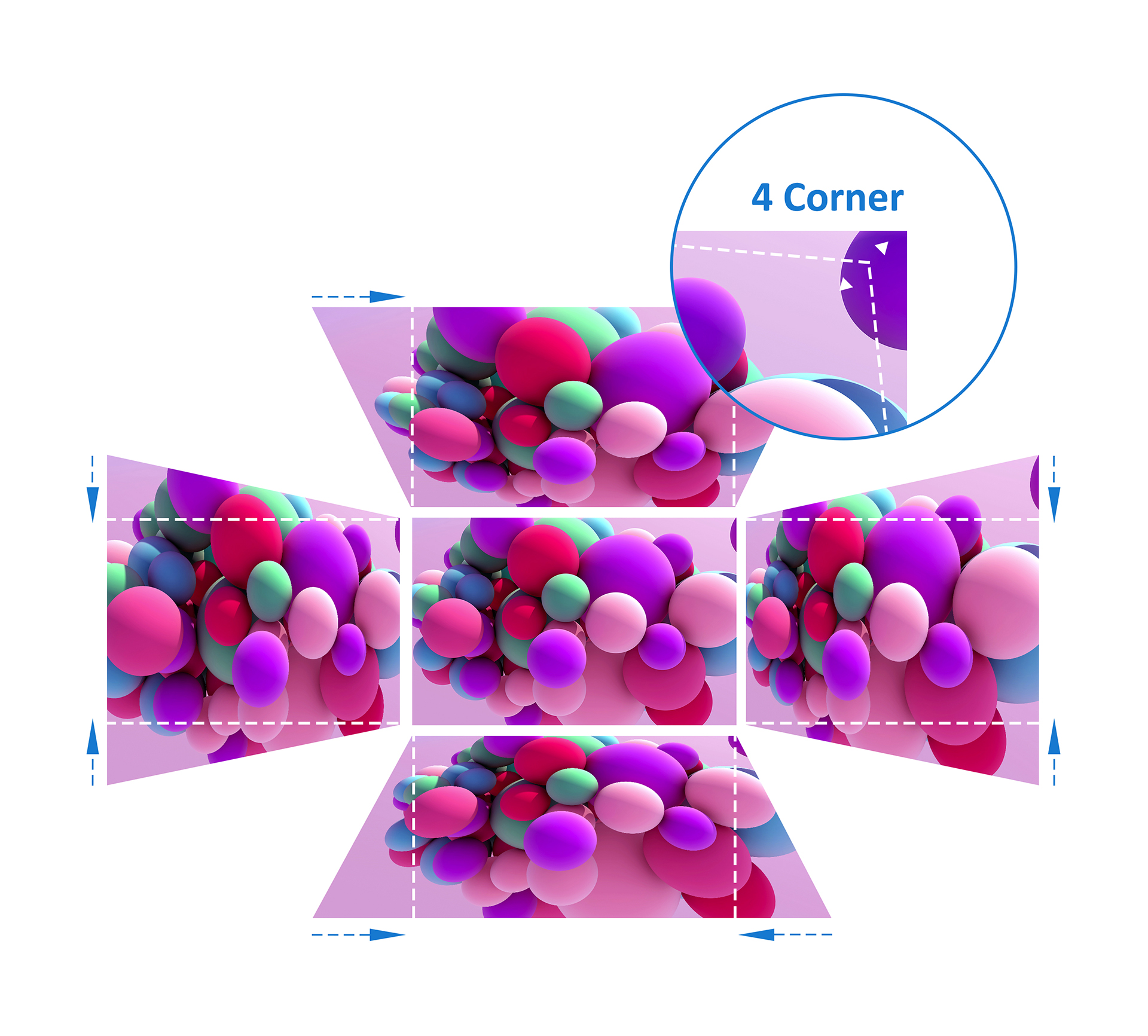 Horizontal and Vertical Keystone correction along with 4 corner adjustment features eliminate crooked or distorted images for a perfectly proportioned picture every time.