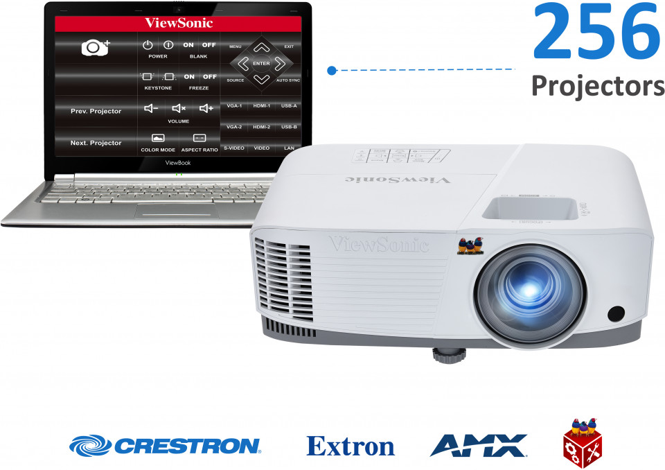 This projector comes equipped with Crestron, AMX, PJ Link, ATEN, Extron and ViewSonic vController, an easy-to-use network management tool.