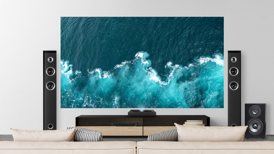 Maintain the aesthetic and spaciousness of your home with a 0.22 ultra short throw ratio. Get a 100” screen with only 23 cm distance from the wall to ensure the projector’s presence maintains harmony with your tasteful interior, freeing the wall space when not in use.
