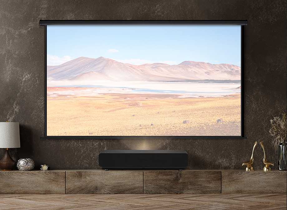 Maintain the aesthetic and spaciousness of your home with a 0.25 ultra short throw ratio. Get a 100” screen with only 38 cm distance from the wall to ensure the projector’s presence maintains harmony with your tasteful interior design,
