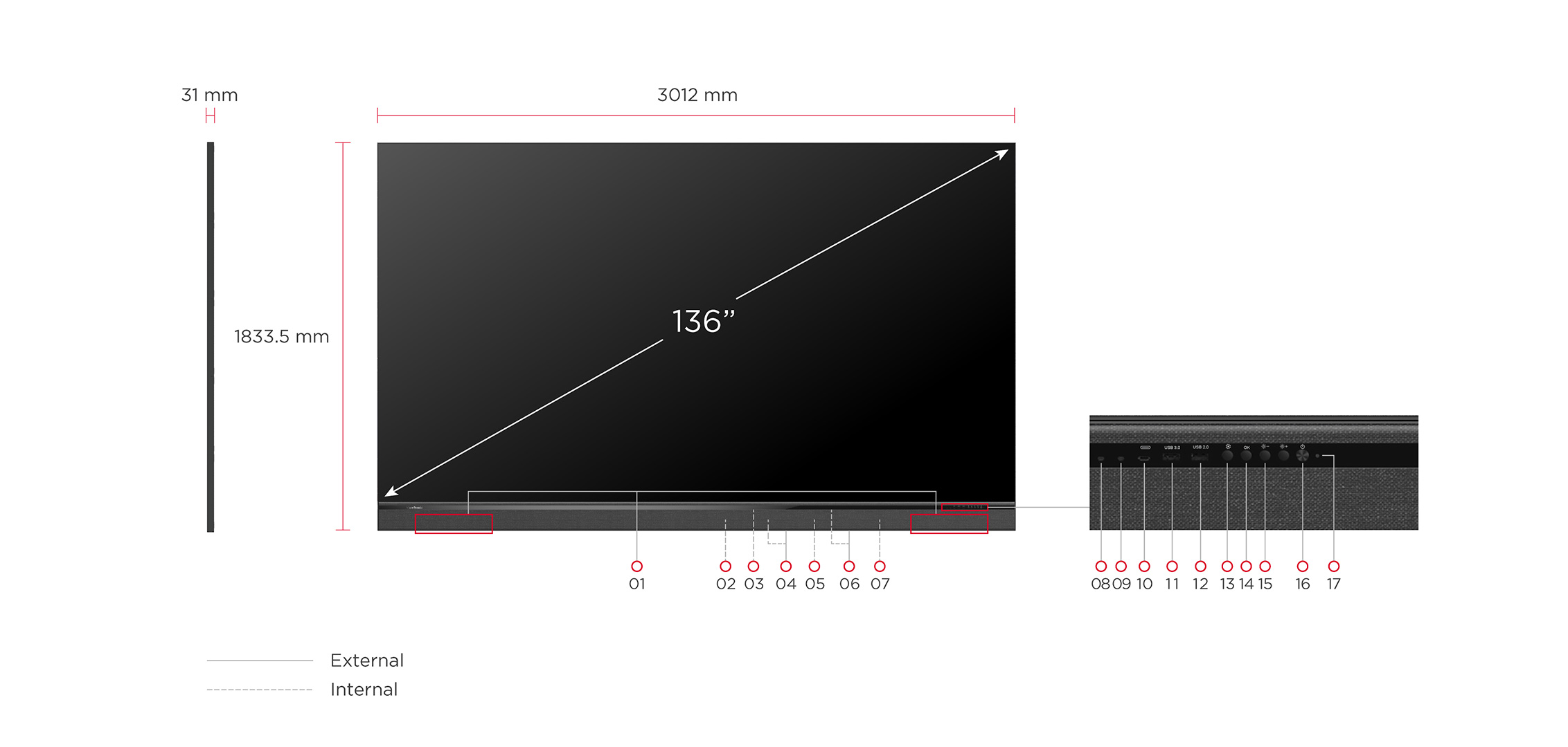 The ViewSonic LDM136-151 is a cutting-edge 136” All-in-One LED display designed to elevate visual and auditory experiences in high-end corporate and educational environments. Boasting an impressive 600-nit brightness, a high 6,500:1 contrast ratio, and a 3,840Hz refresh rate, complemented by dual 30W speakers, it ensures exceptional clarity and immersive audio for every video, presentation, or lecture. The All-in-One display features a user-friendly design for a simplified installation experience. It also utilizes the Glue-on-Board (GOB) surface treatment technology, achieving an IP54 rating for enhanced protection from collisions, dust, and moisture. Featuring a 31mm ultra-slim design and 6mm thin bezels, the display offers a premium aesthetic and ensures an engaging viewing experience. Additionally, the detachable control box enables it to achieve a nearly 99% screen-to-body ratio, seamlessly integrating into any space while providing easy accessibility. Moreover, it supports PIP/PBP display and wireless casting capabilities, offering more flexibility for collaboration. Adding to its convenience, compatibility with AV control systems enables IT staff to remotely configure the display.