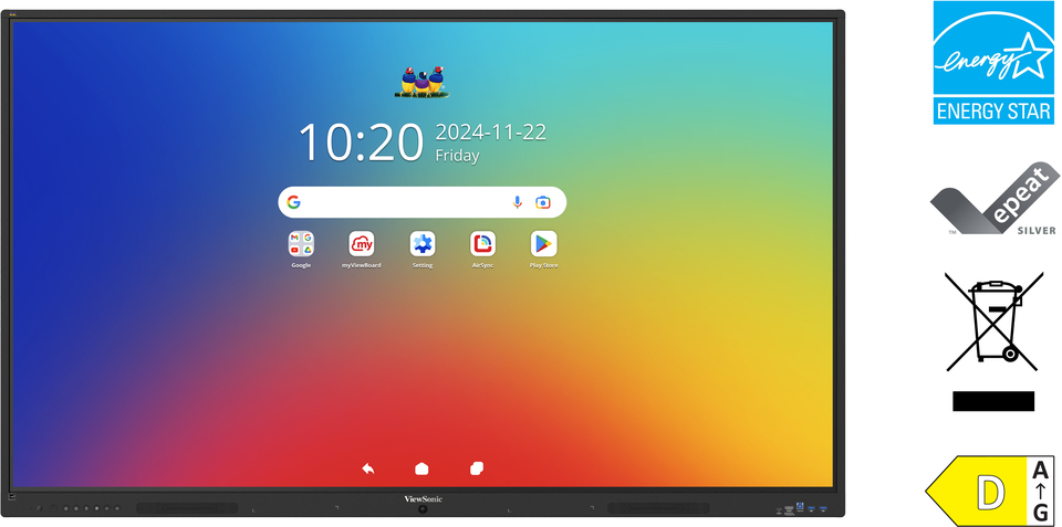 Experience fast, smooth, and reliable performance in every class with the ViewBoard® IFP35-1 Series. Available in 65", 75", and 86" models, it’s powered by an octa-core CPU with 128GB storage. EDLA-certified Android 16 ensures secure access to Google Play apps and a responsive system for effective teaching. Integrated ViewSonic Education Software includes tools for whiteboarding, wireless casting, and device management, helping teachers create interactive and engaging lessons while streamlining IT workflows. Built-in ambient light and motion sensors complete the experience, optimizing brightness, conserving energy, and extending panel life for smarter, more efficient classrooms.Experience Fast, Reliable Performance