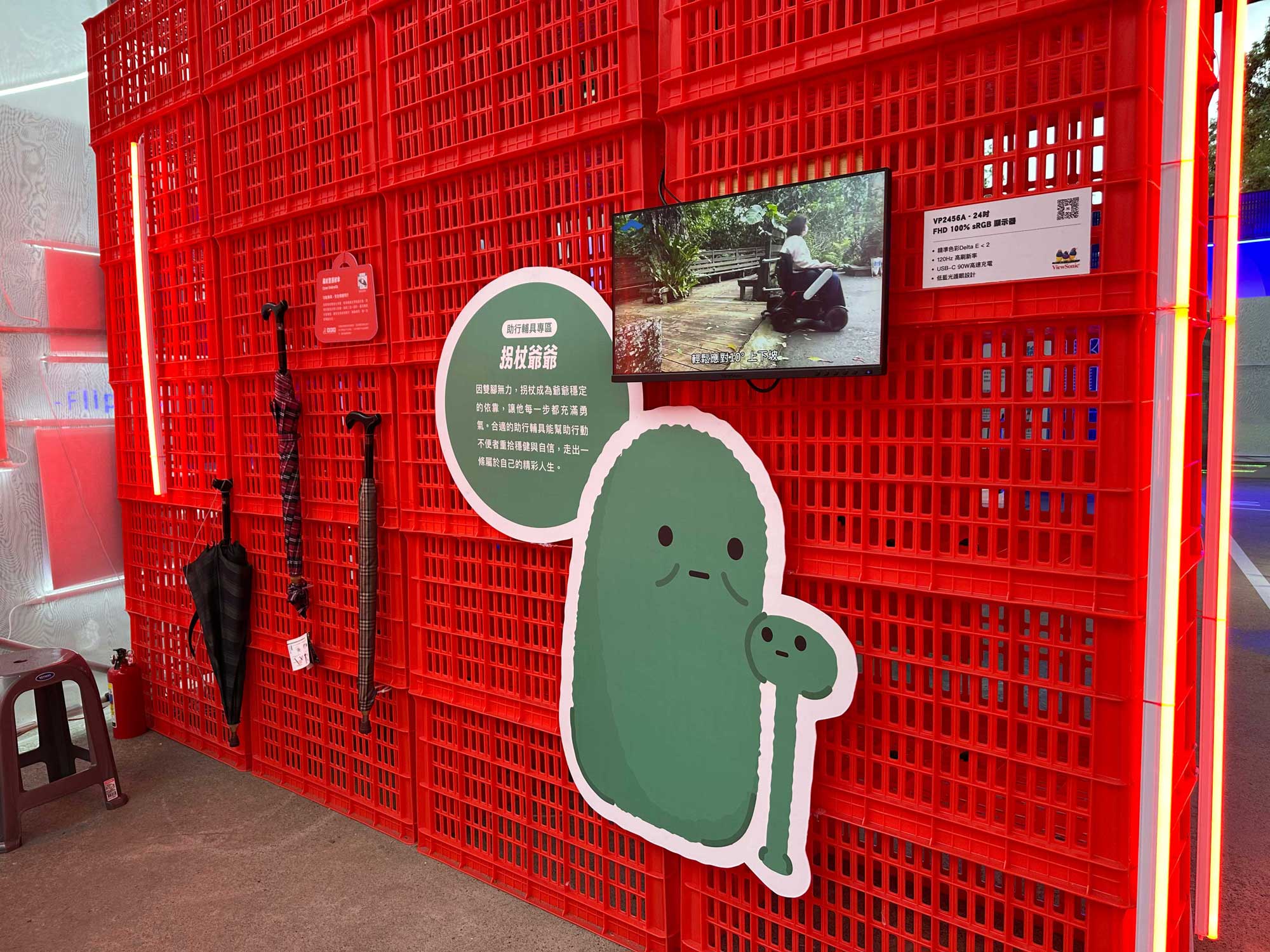 在「驚喜潮牌店」主題區,ViewSonic 提供多台ColorPro 系列 專業顯示器,以其高色彩準確度與真實影像呈現,滿足專業創作者對色彩一致性和影像品質的嚴苛要求,協助策展團隊完整呈現主題視覺設計,包括色彩鮮明的展板動畫與主視覺影片。顯示器本身也成為場景的一部分,吸引觀眾駐足拍照與社群分享,進一步放大展覽的影響力。