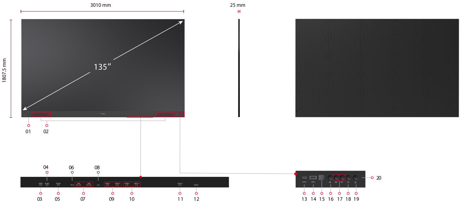 ViewSonic® LDP135-151 是一款第二代 135 吋 All-in-One 直視型 LED 顯示器。它不僅兼具簡約的外型及驚人逼真的影像表現,All-in-One 一體化設計還可輕鬆安裝及維護。第二世代的 LDP135-151 經過升級,除了先進的功能以外和更壯觀的視聽體驗以外,更採用了用戶友善的設計。LDP135-151 擁有 120% 的 Rec. 709 的寬廣色域、高達 4,440Hz 的超快更新率,以及 600 尼特的峰值亮度,提供真實逼真的色彩使每個影片、簡報或講座都將成為非凡的沉浸式體驗。另外,LDP135-151 內建了 Harman Kardon 揚聲器、支援 4K HDR/HLG 以及幀間插值技術,傳遞無與倫比的沉浸式音效和滑順的視覺饗宴。LDP135-151 的機身厚度只有 25mm,邊框寬度僅 5mm,實現無邊框設計,在任何環境中都顯得精緻優雅。此外,為配合任何空間和使用情境,LDP135-151 支援縱向或橫向安裝。LDP135-151 也可以合併拼接,組成超寬大的 32:9 電視牆,提供無縫的視覺體驗。LDP135-151 的系統控制箱也能輕鬆拆卸,方便融入每個設計中。