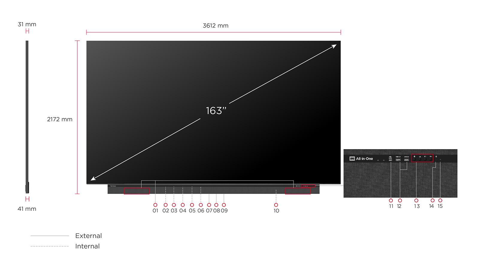 | Product Dimensions (WxHxD) with wall mount: | 142.20 x 85.51 x 2.35 inches (3612 x 2172 x 59.8mm) |