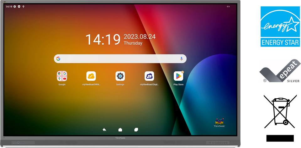 ViewBoard IFP52-2F 系列獲得 EPEAT 銀級認證,意即在能源消耗、供應鏈碳排放和產品生命週期管理方面通過了嚴苛標準。對於同樣致力於永續性發展的學校,ViewBoard IFP52-2F 系列作為一個符合成本效益和節能標準的解決方案,與您攜手實現永續目標。