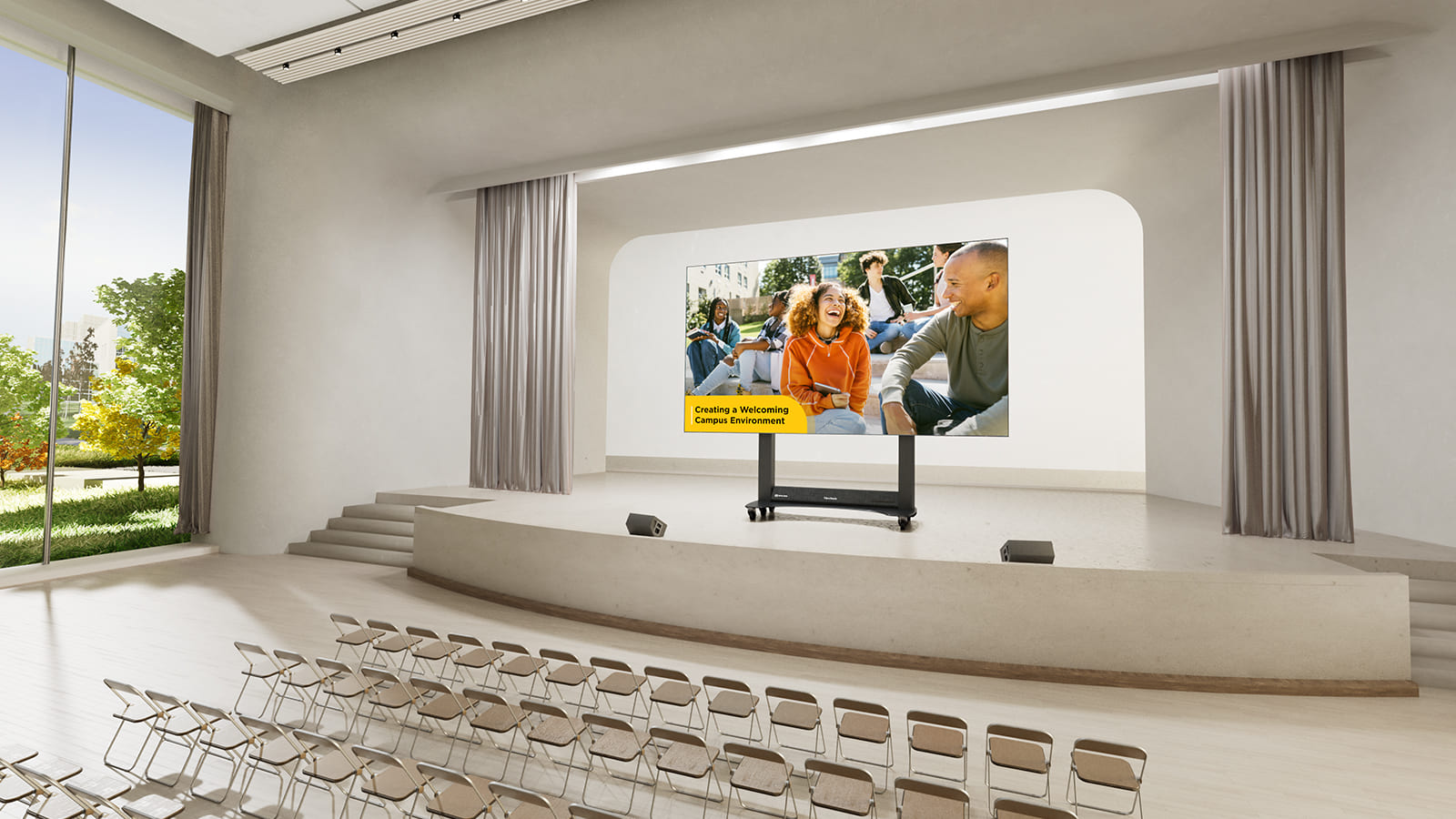 The 138” LED display comes fully pre-assembled with LED modules, cabinets, and a motorized floor stand with an integrated system control box. It’s ready to use within minutes, eliminating the need for wall-mounted installation and making setup faster, easier, and more accessible for installers.