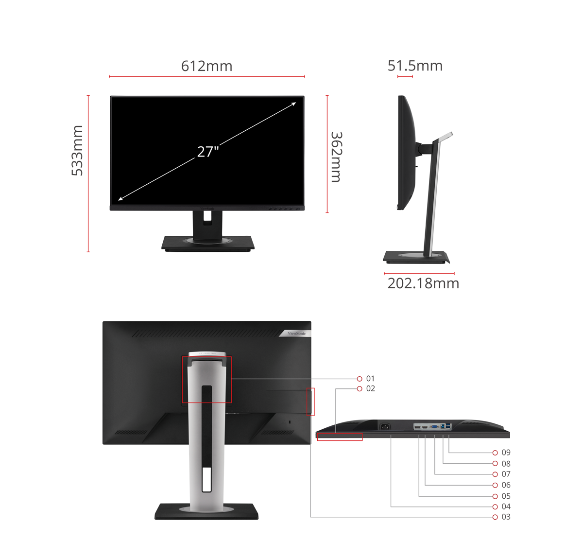 HDMI, DisplayPort, VGA, and USB 3.2 inputs enable you to connect an array of devices to VG2748a-2.