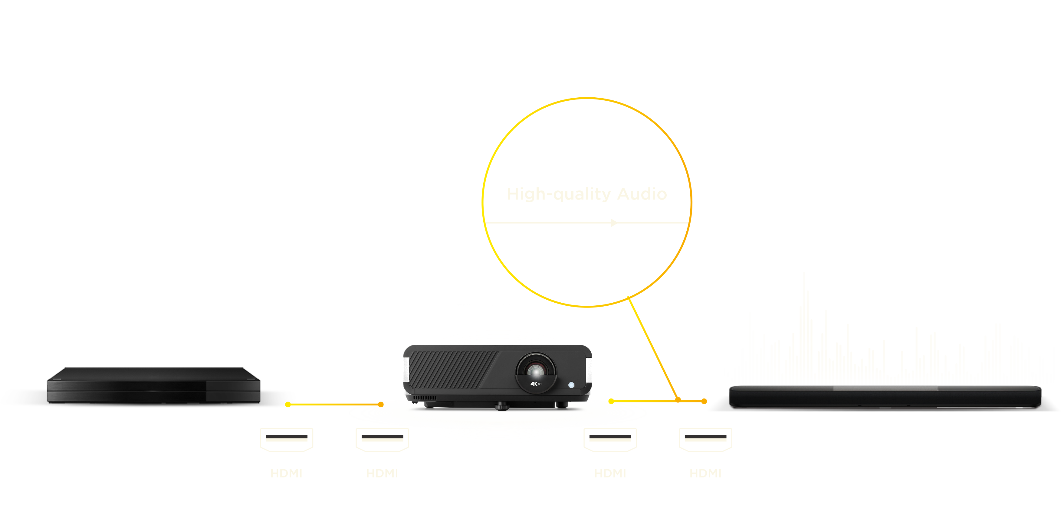 Immerse yourself in unparalleled clarity with true Ultra HD, enriched by the vibrant visuals of HDR/HLG support. With 8.3 million pixels, this projector's 4K resolution vividly brings movies, sports, games, and your favourite streaming content to life.