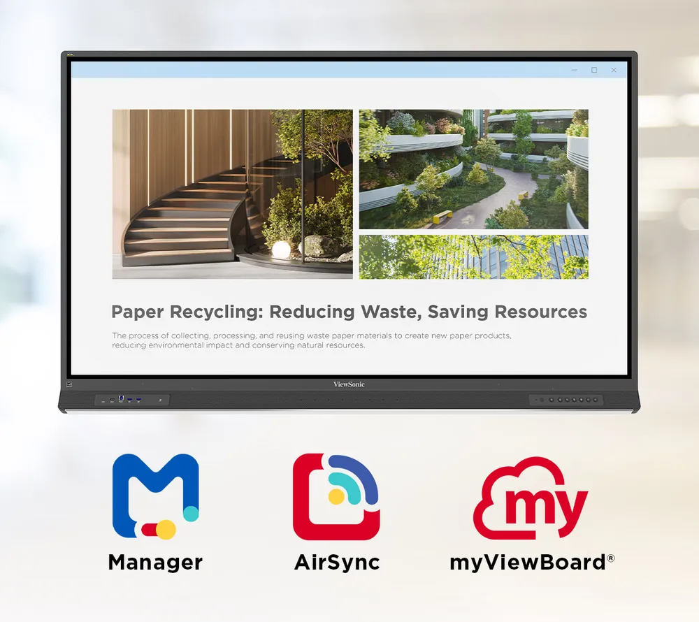 This display includes myViewBoard®, AirSync™, Manager™, and other ViewSonic tools at no additional cost. These built-in solutions support interactive experiences with real-time quizzes, annotation features, and easy content sharing, helping teams and learners collaborate more effectively both in person and remotely.