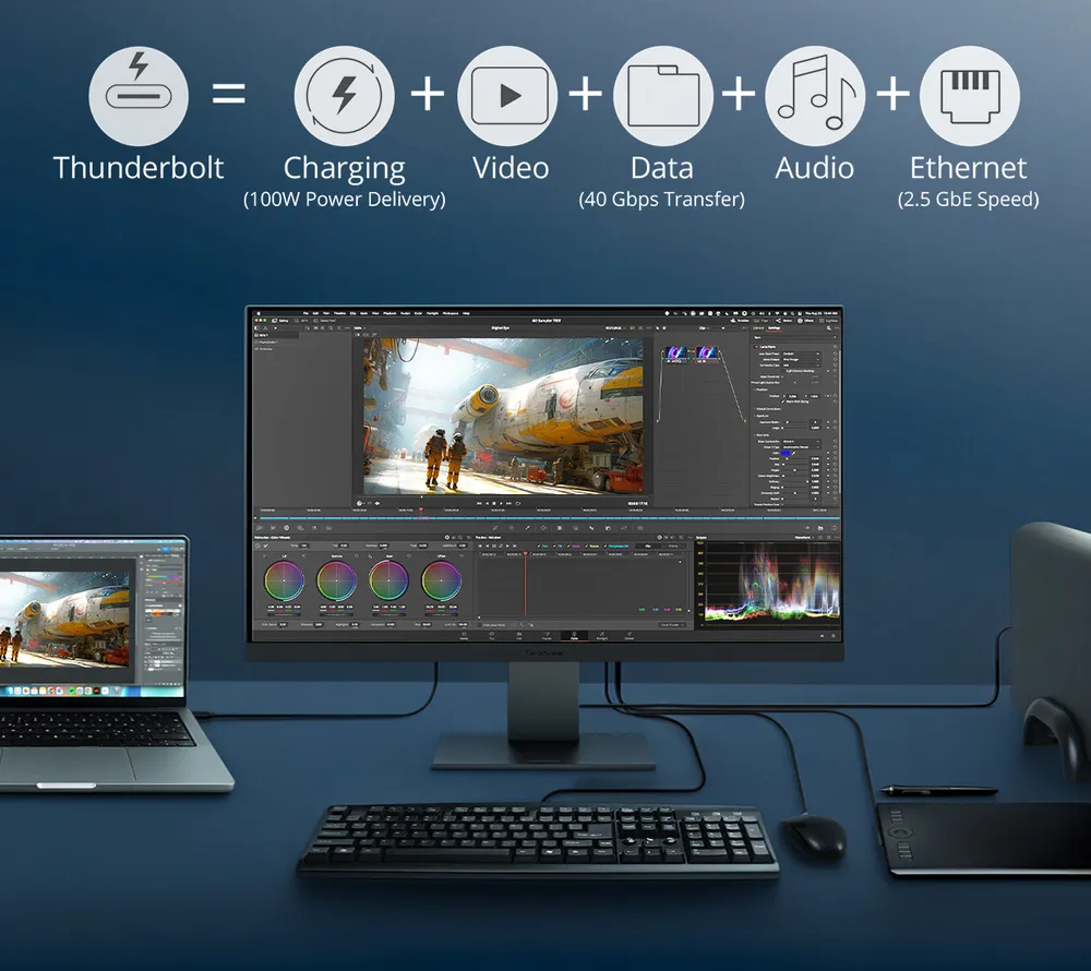 With integrated Thunderbolt 4, you can connect your laptop directly to the monitor using a single cable, eliminating the need for a separate docking station. Stay connected to your wired network with the built-in RJ45 port. A USB-A hub lets you easily connect your keyboard, mouse, and other peripherals.